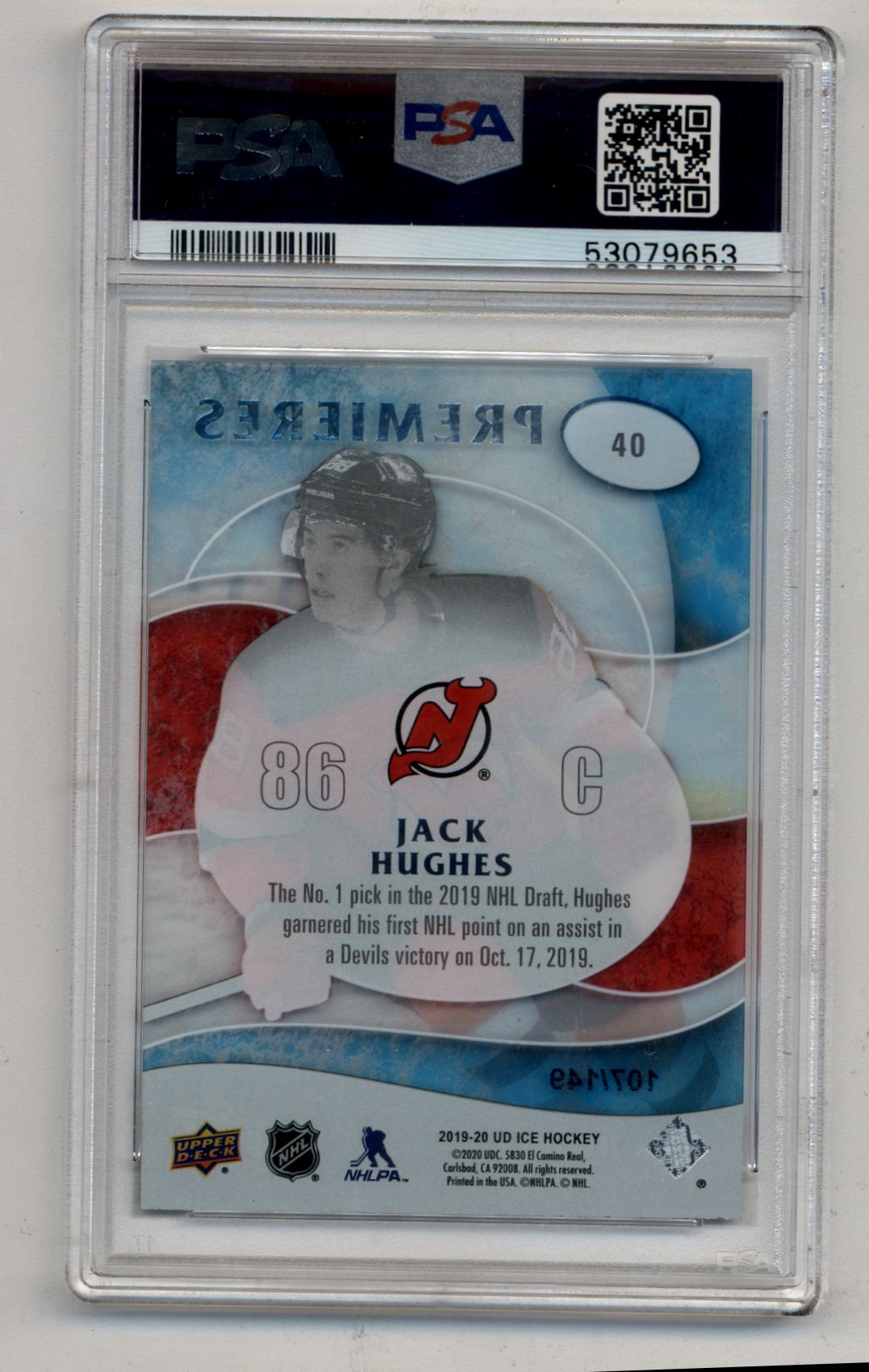 Jack Hughes 2019-20 Upper Deck Ice Ice Premieres Retro 107/149 PSA 10 Gem Mint