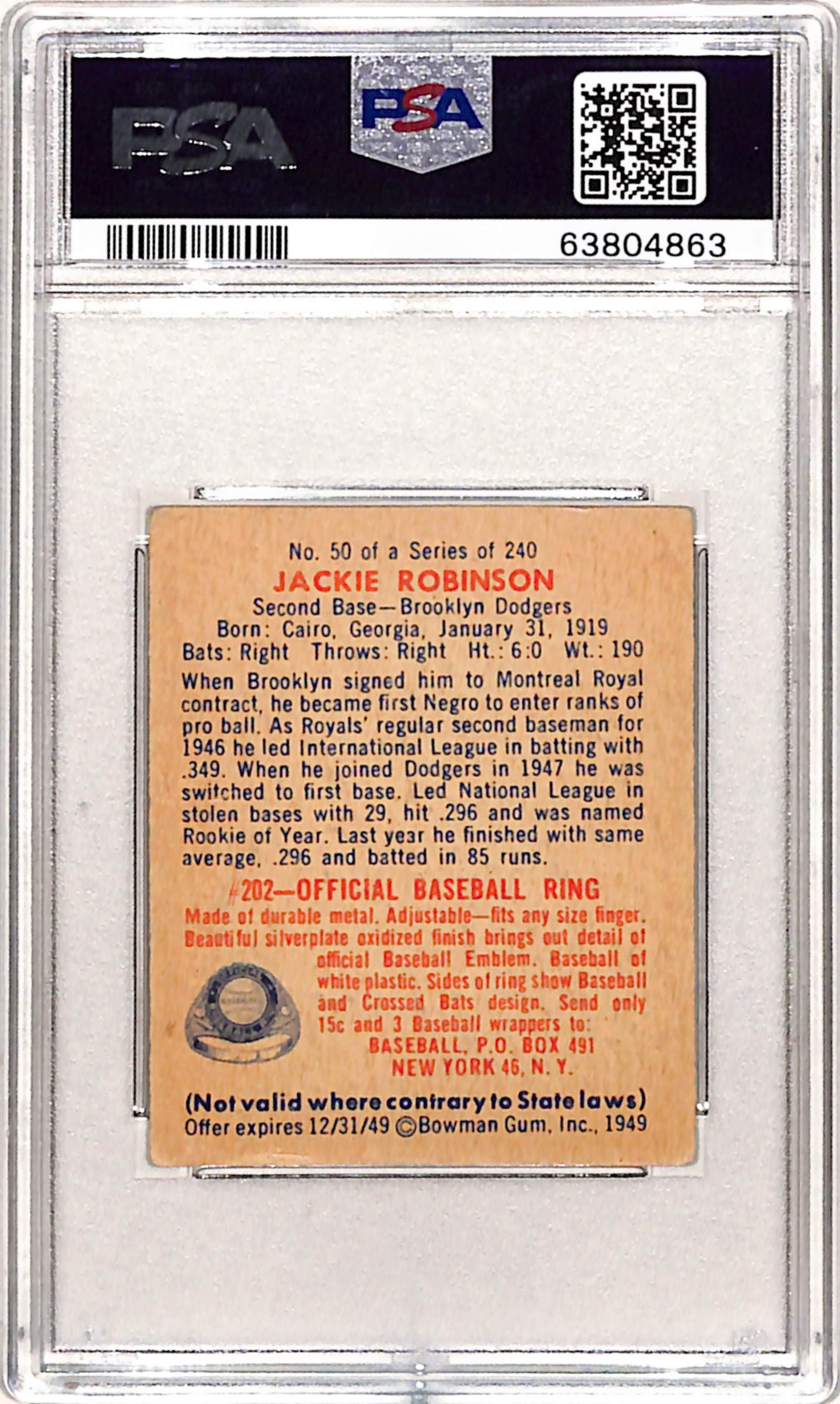 Jackie Robinson 1949 Bowman #50 PSA 3 Very Good
