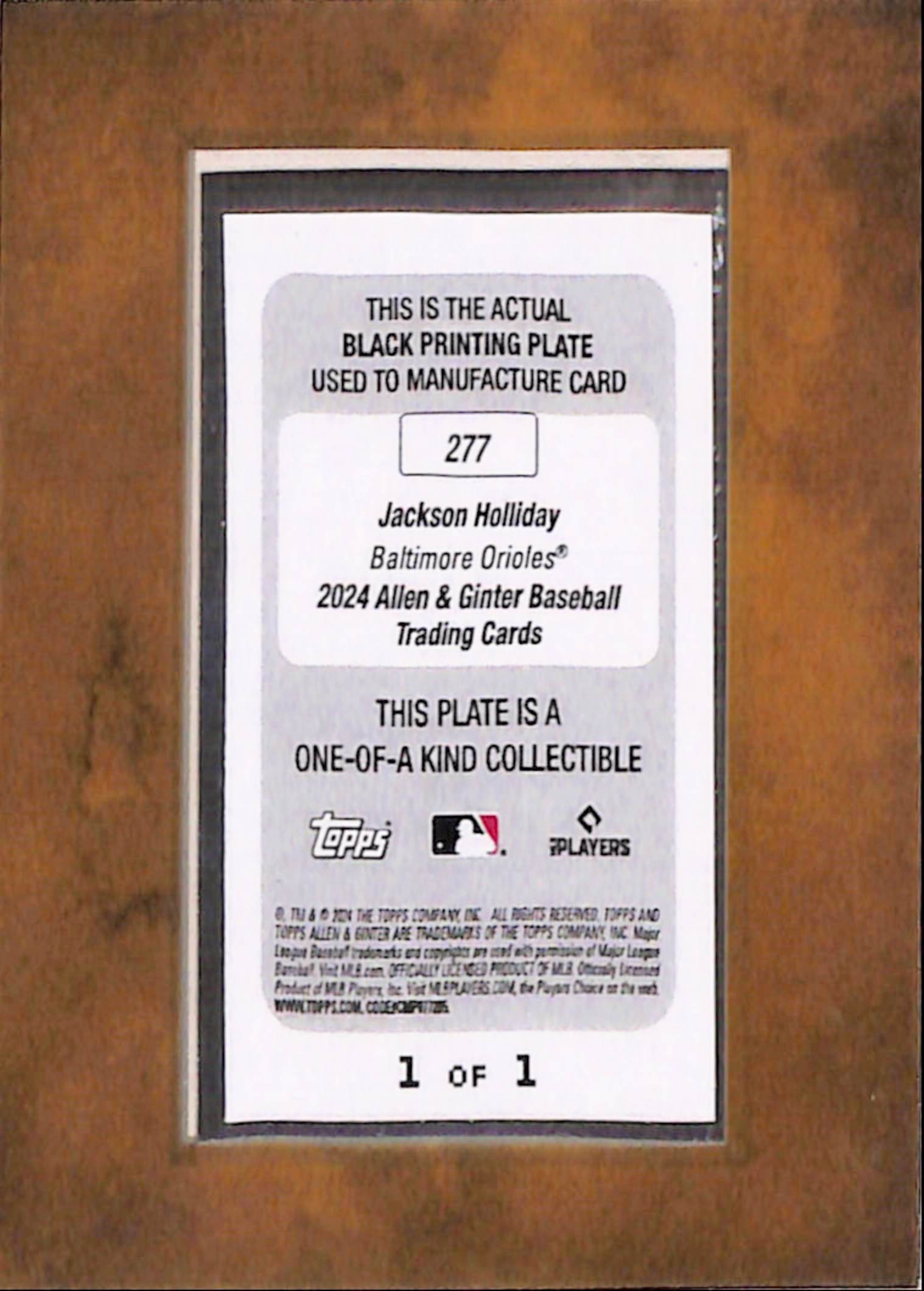 Jackson Holliday 2024 Topps Allen and Ginter Black Printing Plate #1/1