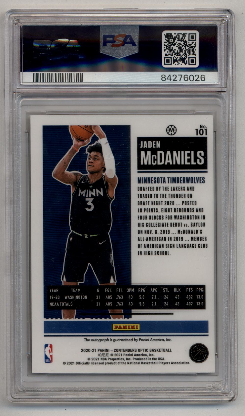 Jaden McDaniels 2020-21 Contenders Optic Variation Auto PSA 10 Gem Mint Auto 10