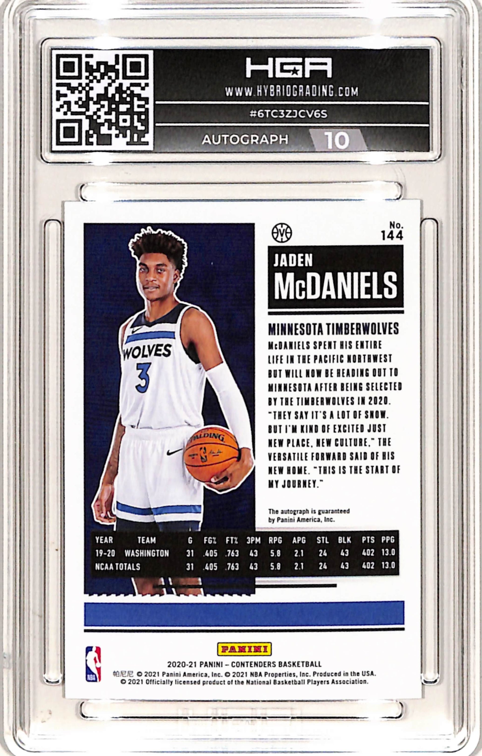 Jaden McDaniels 2020 Panini Contenders Rookie Variation Auto HGA 9.5 Gem Mint