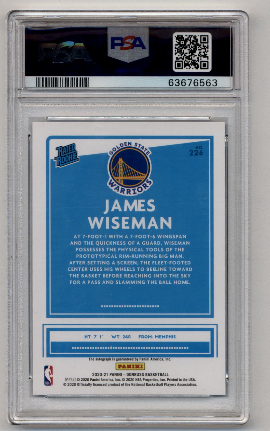James Wiseman 2020-21 Donruss Signature Choice Blue Auto 38/49 PSA 9 Mint Auto 10