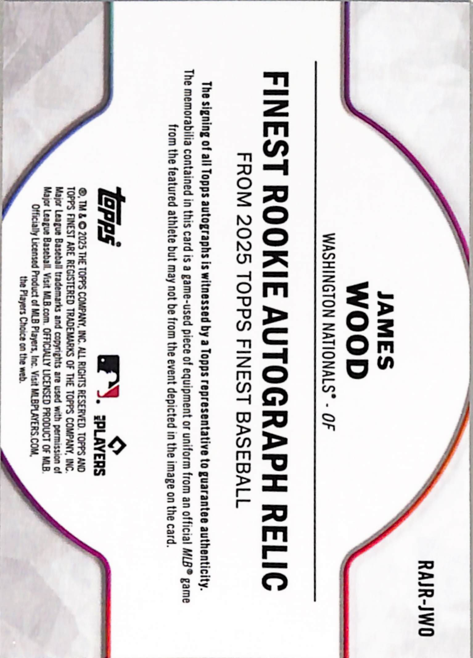 James Wood 2025 Topps Finest Rookie Relic Auto Green #18/75