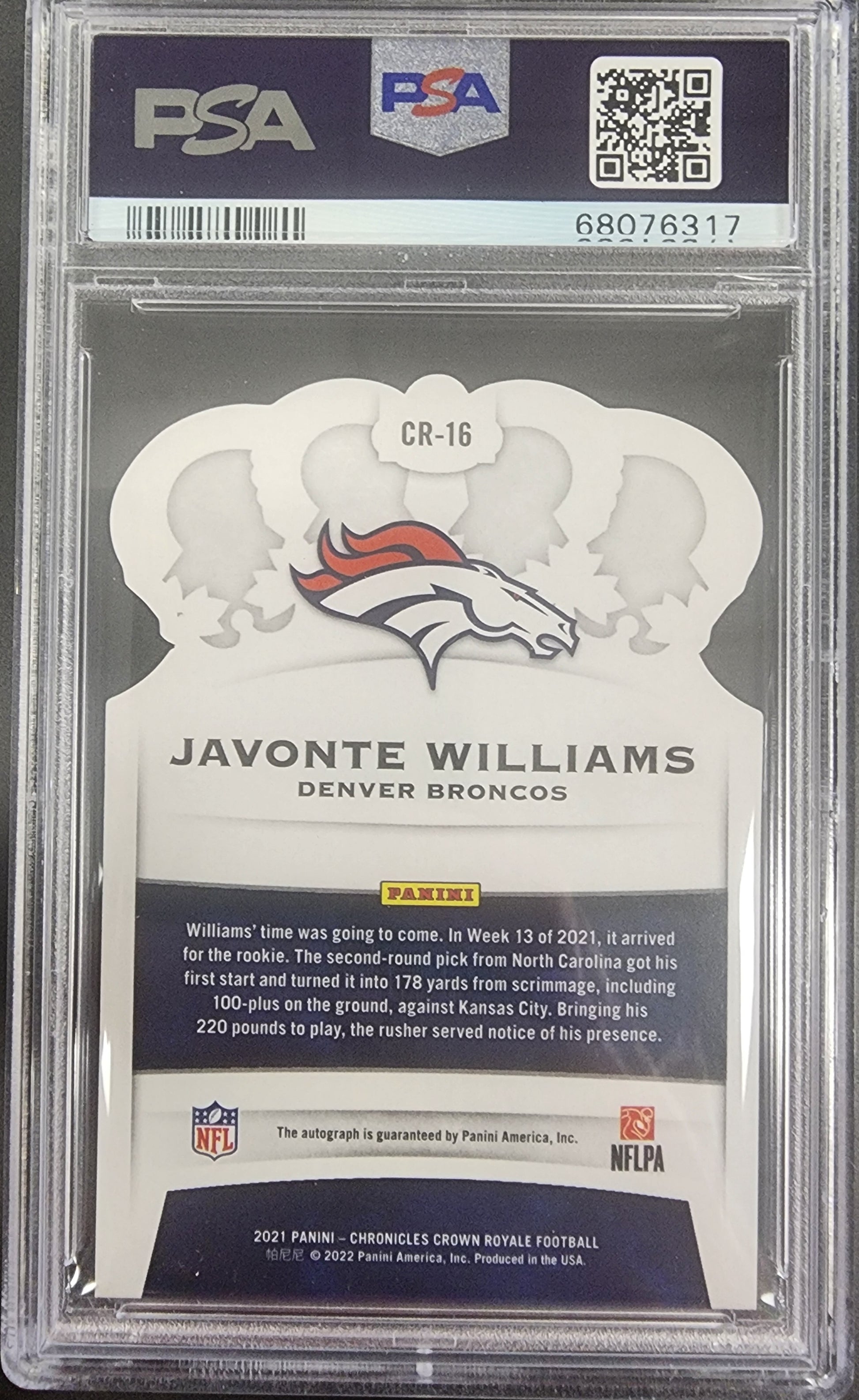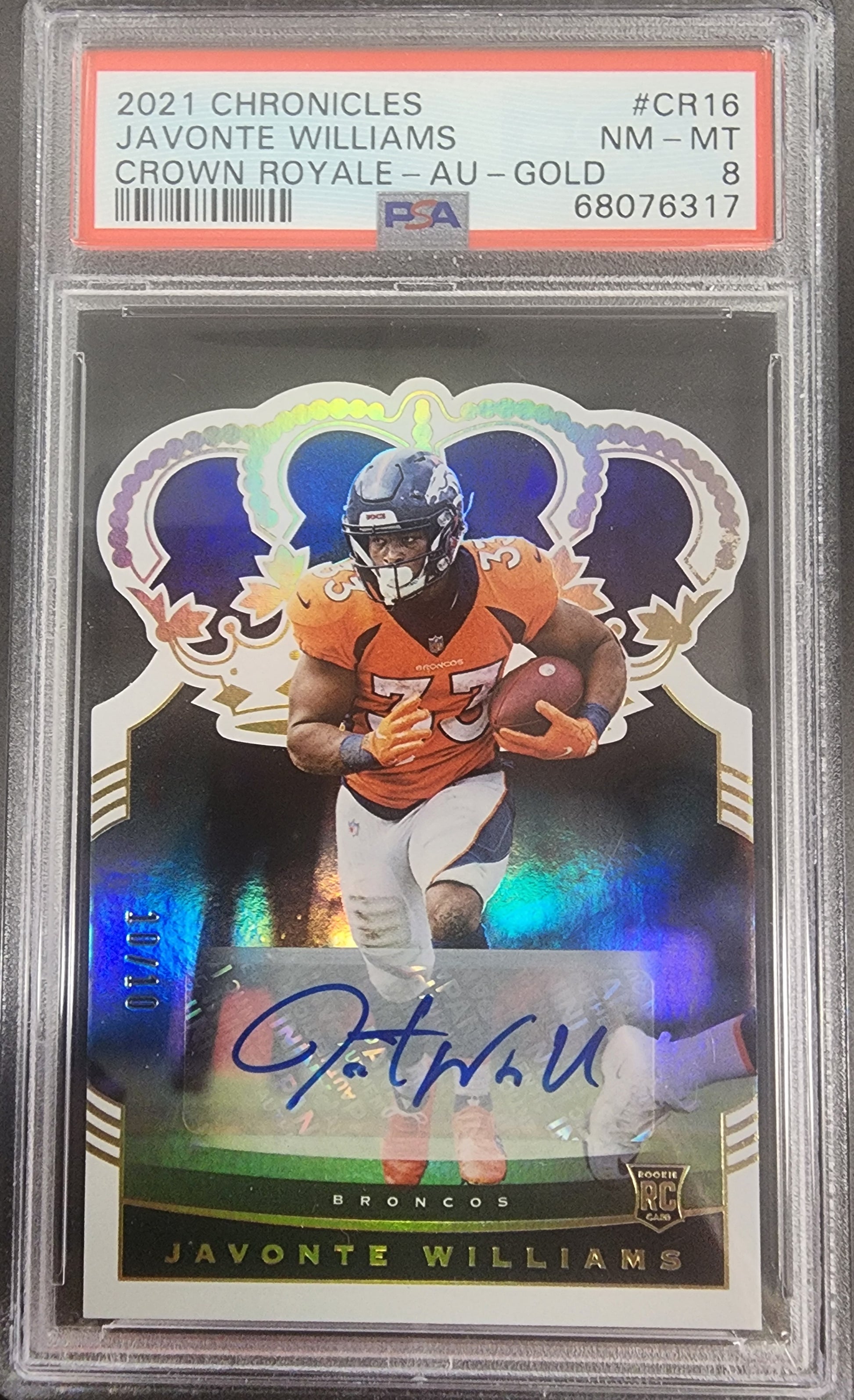 Javonte Williams 2021 Crown Royale Gold Auto #10/10 PSA 8 Nm-Mint