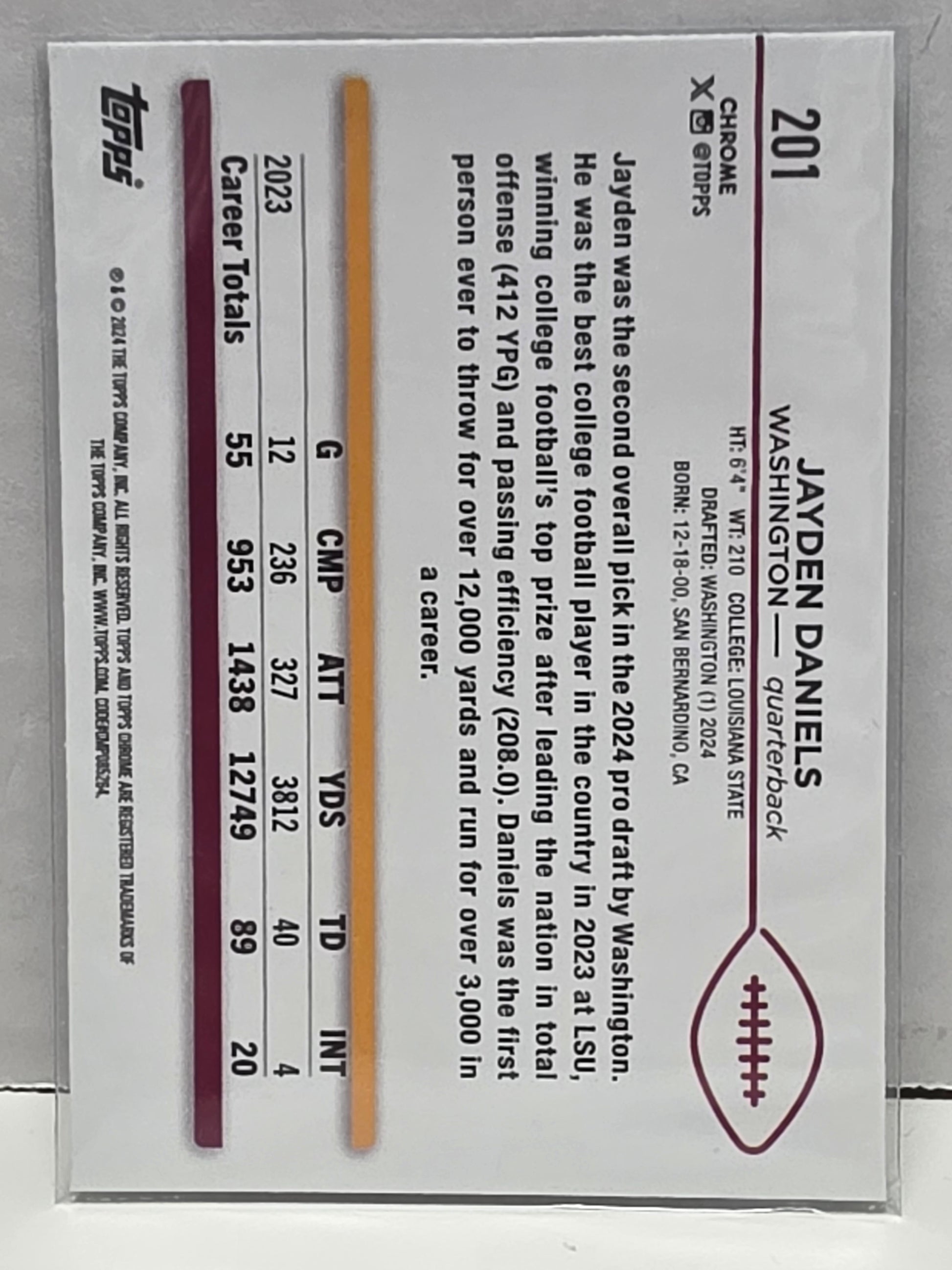 Jayden Daniels 2024 Topps Chrome Aqua Refractor #45/199