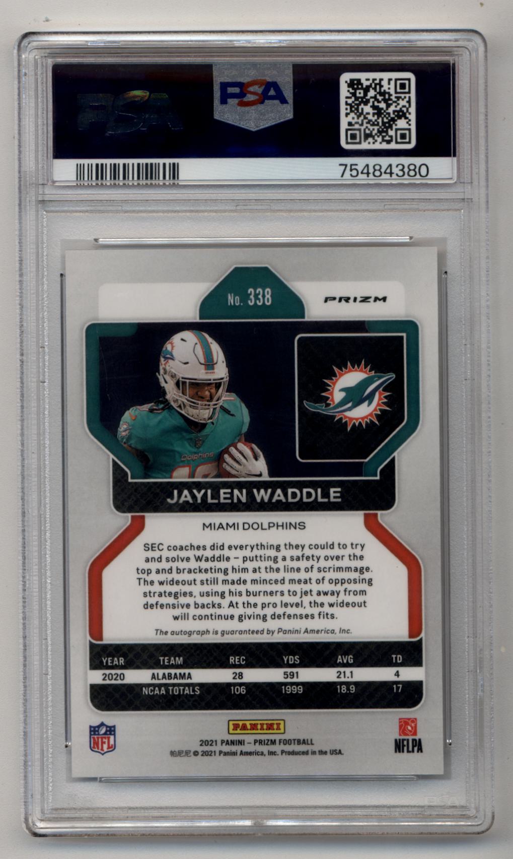 Jaylen Waddle 2021 Prizm No Huddle Auto PSA 9 Mint Auto 10