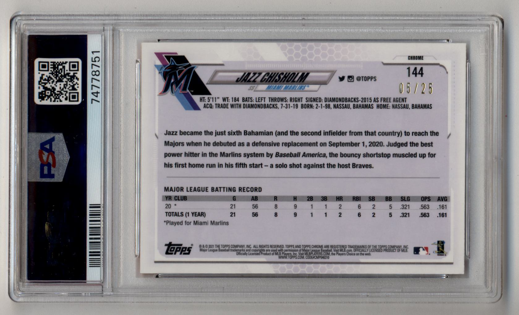 Jazz Chisholm 2021 Topps Chrome #144 Orange Refractor 05/25 PSA 10 Gem Mint