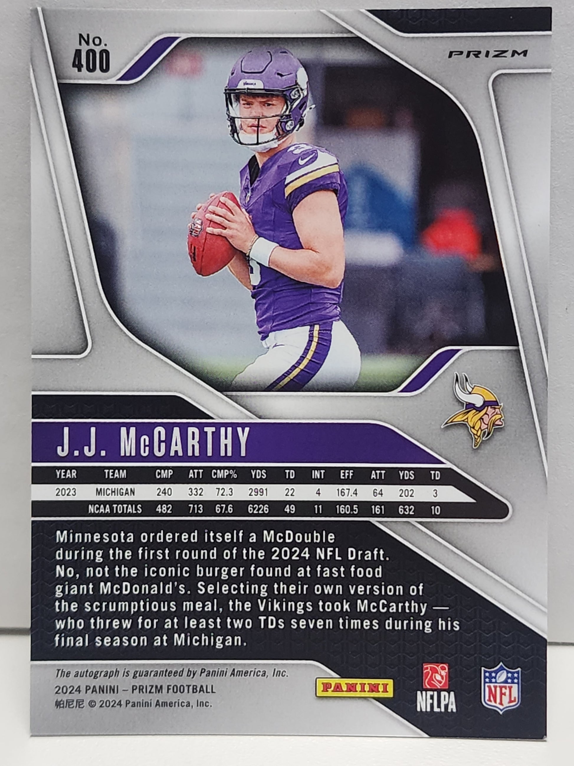JJ McCarthy 2024 Panini Prizm #400 Rookie Silver Auto
