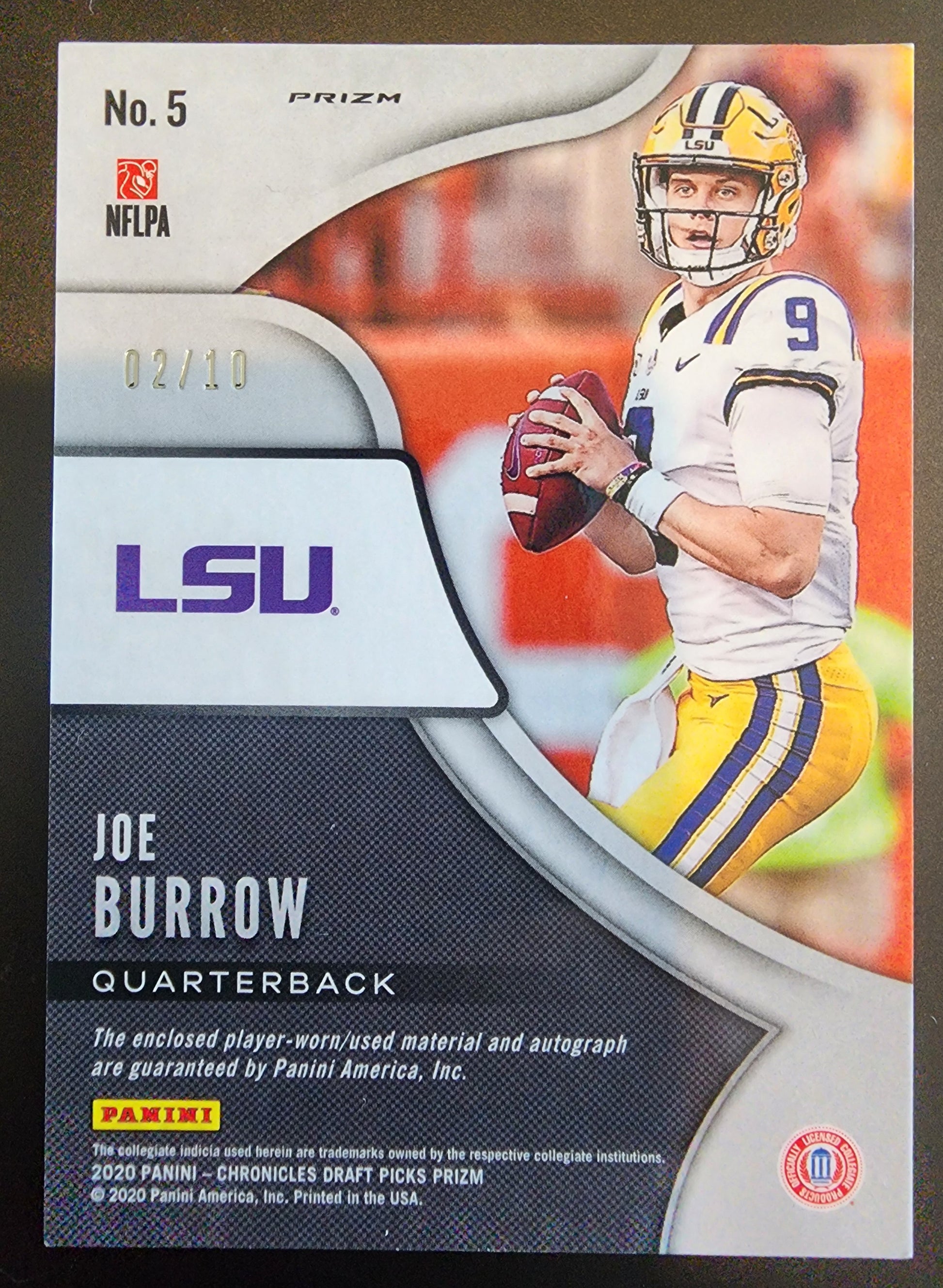 Joe Burrow 2020 Panini Prizm Draft Pink Patch Auto RC #2/10