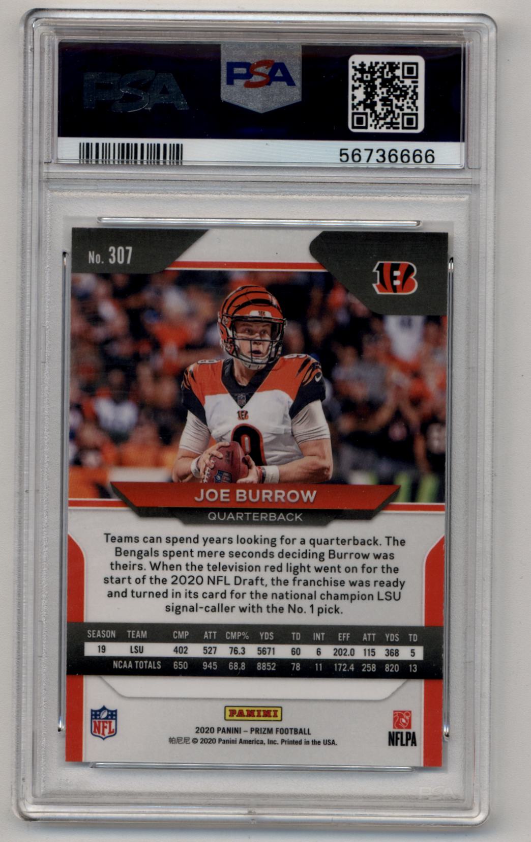 Joe Burrow 2020 Prizm Rookie #307 PSA 10 Gem Mint 6666