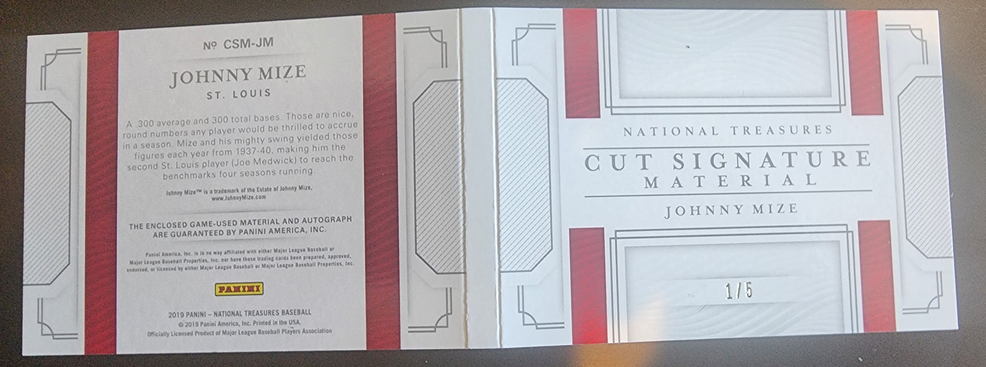 Johnny Mize 2019 Panini National Treasures Auto Jersey Booklet #1/5