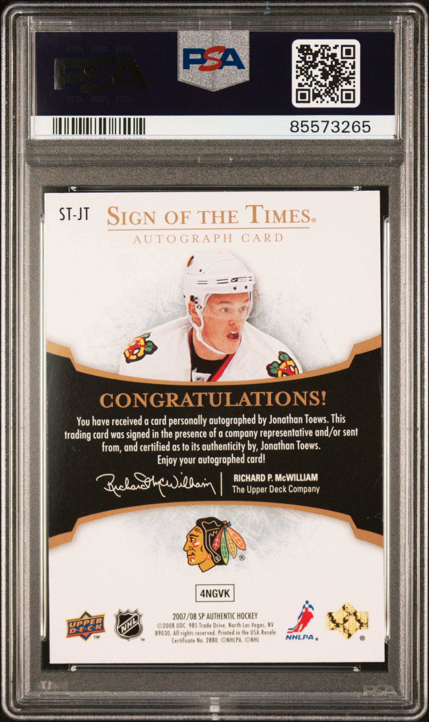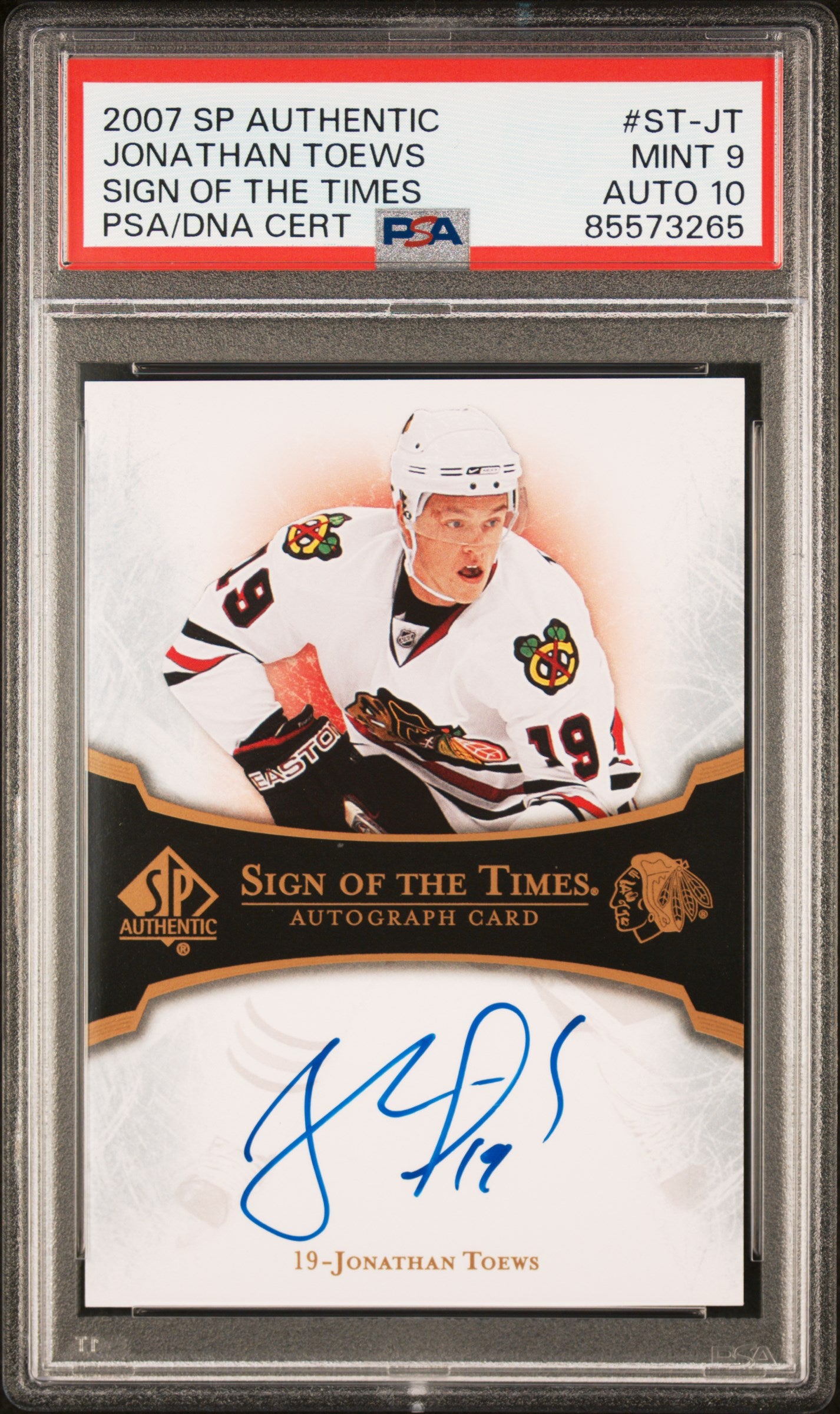 Jonathan Toews 2007 SP Authentic Sign of the Times Auto PSA 9 Auto 10