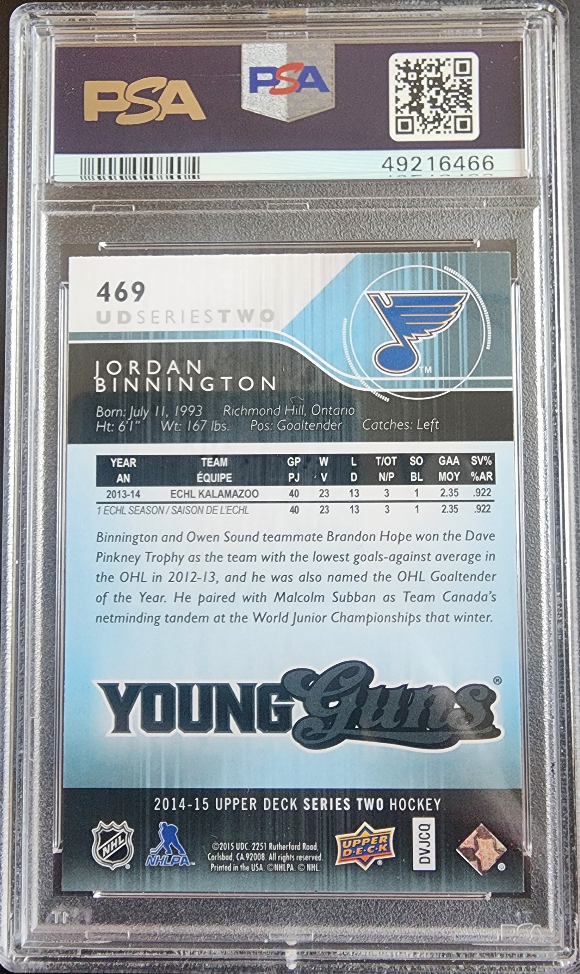 Jordan Binnington 2014 Upper Deck #469 PSA 10 Gem Mint