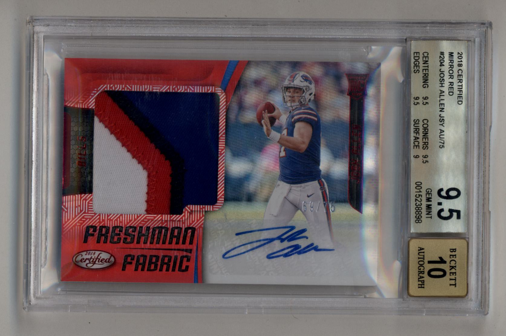 Josh Allen 2018 Certified Mirror Red #204 Freshman Fabric Patch Auto 69/75 BGS 9.5 Gem Mint