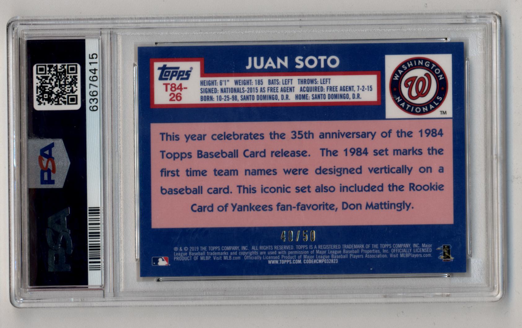 Juan Soto 2019 Topps Silver Pack '84 Chrome Promo Gold Refractor 40/50 PSA 9 Mint