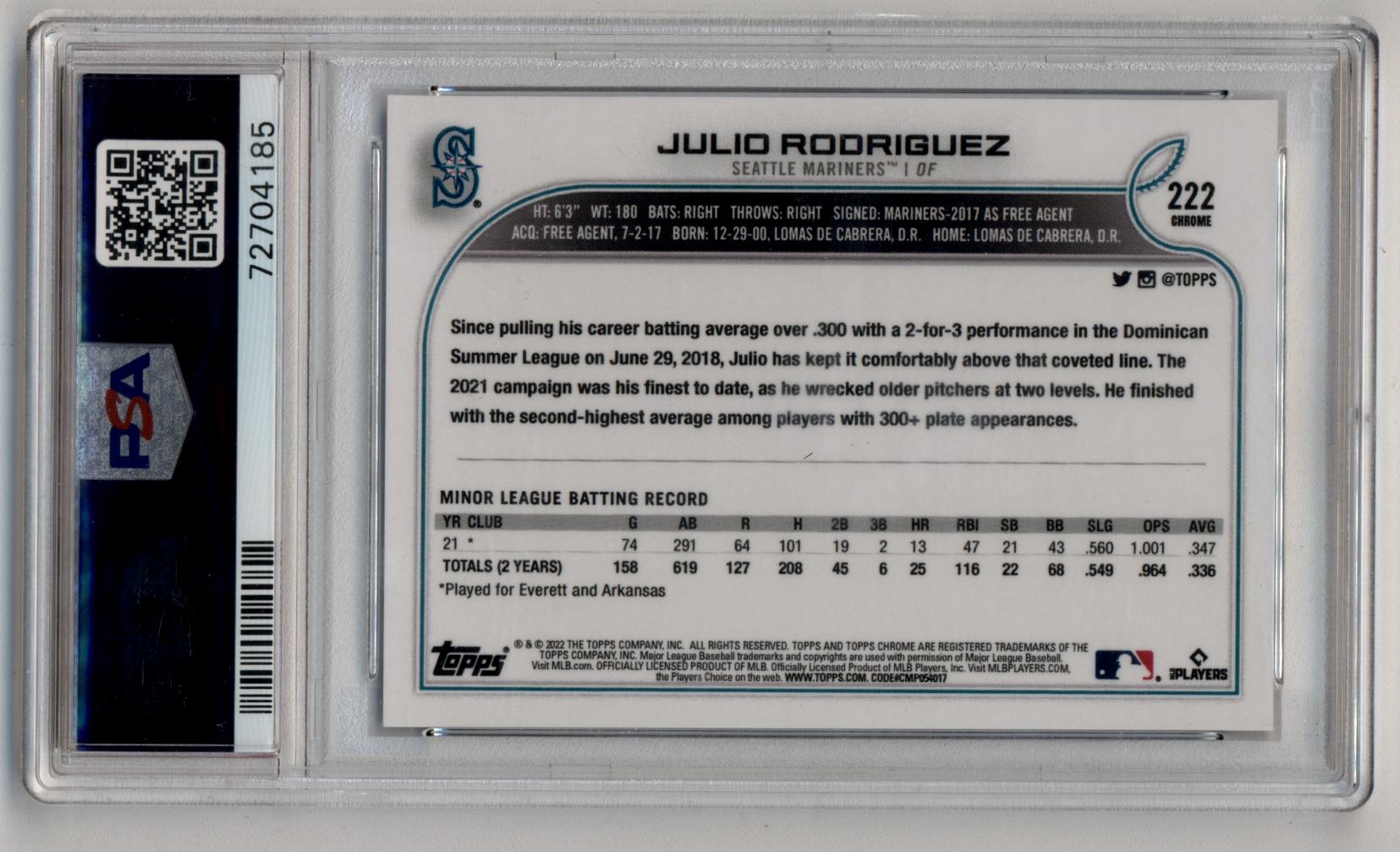 Julio Rodriguez 2022 Topps Chrome SP #222 PSA 10 Gem Mint