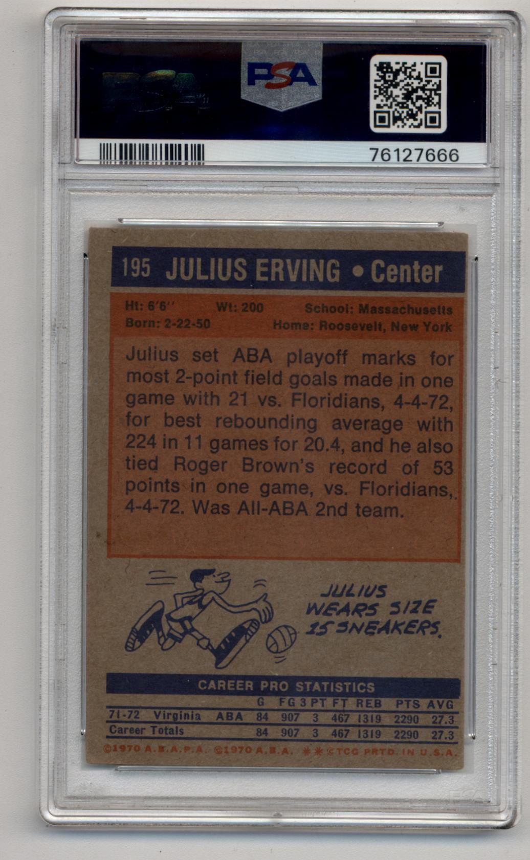 Julius Erving 1972-73 Topps #195 PSA 3 Very Good 7666