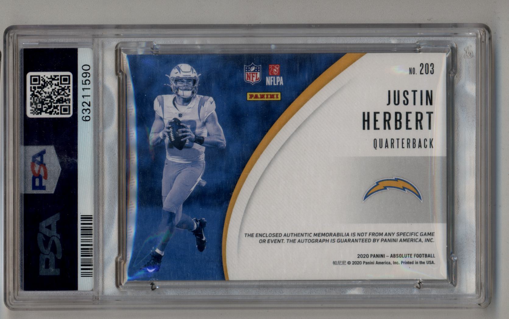 Justin Herbert 2020 Absolute Materials Auto Spectrum #203 34/99 PSA 9 Mint
