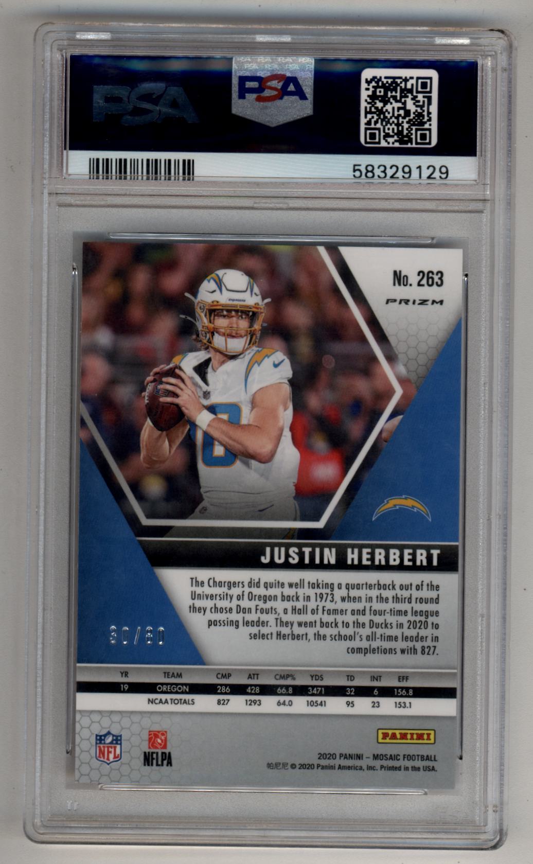Justin Herbert 2020 Mosaic Fusion Red Choice 30/80 PSA 9 Mint