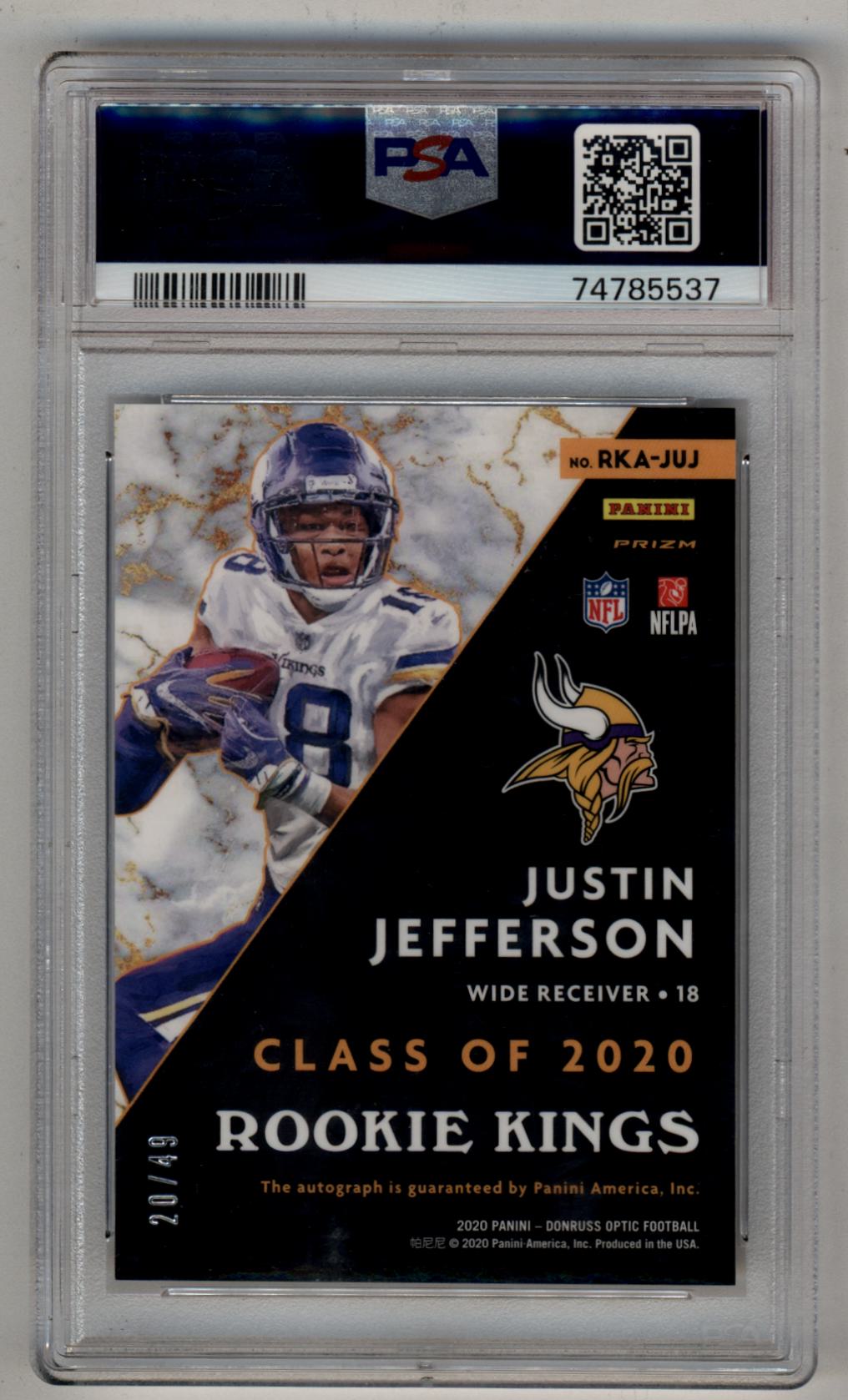 Justin Jefferson 2020 Donruss Optic Rookie Kings Auto 20/49 PSA 10 Gem Mint Auto 10