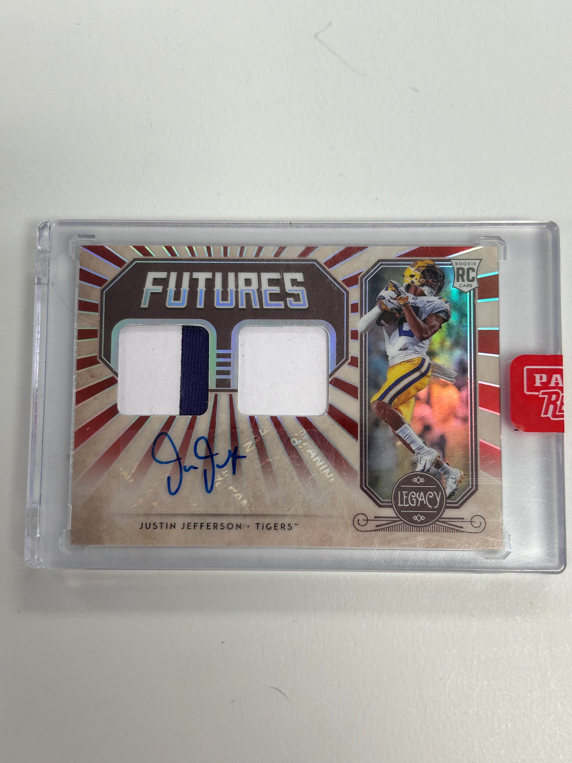 Justin Jefferson 2020 Panini Legacy Dual Patch Auto Red #26/50