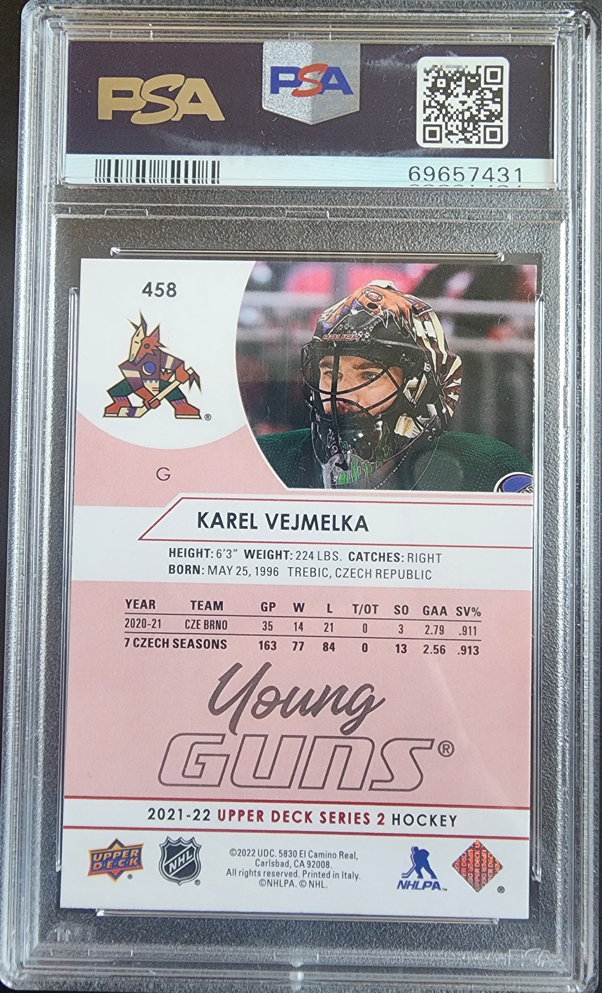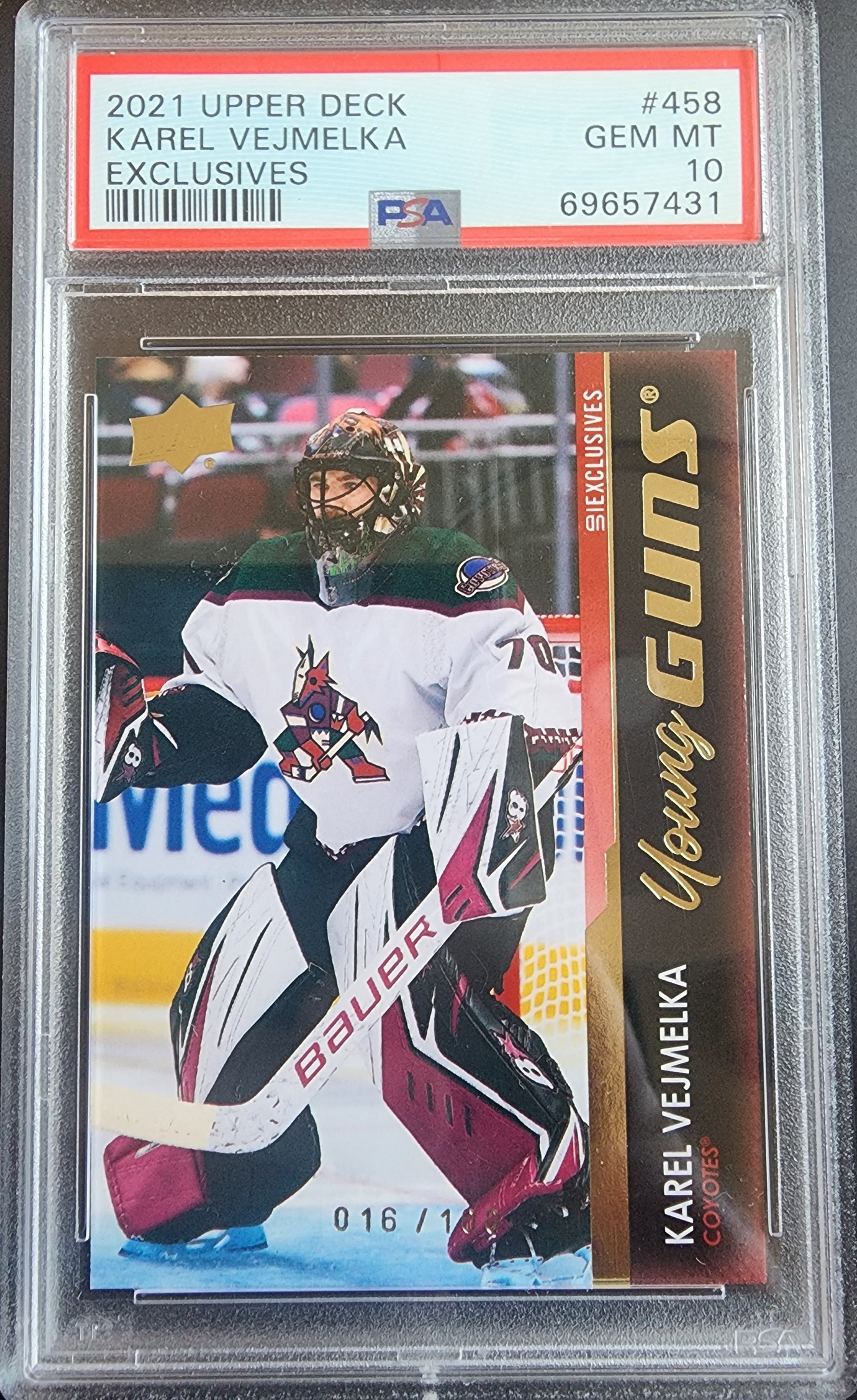 Karel Vejmelka 2021 Upper Deck #458 Exclusives #16/100 PSA 10 Gem Mint