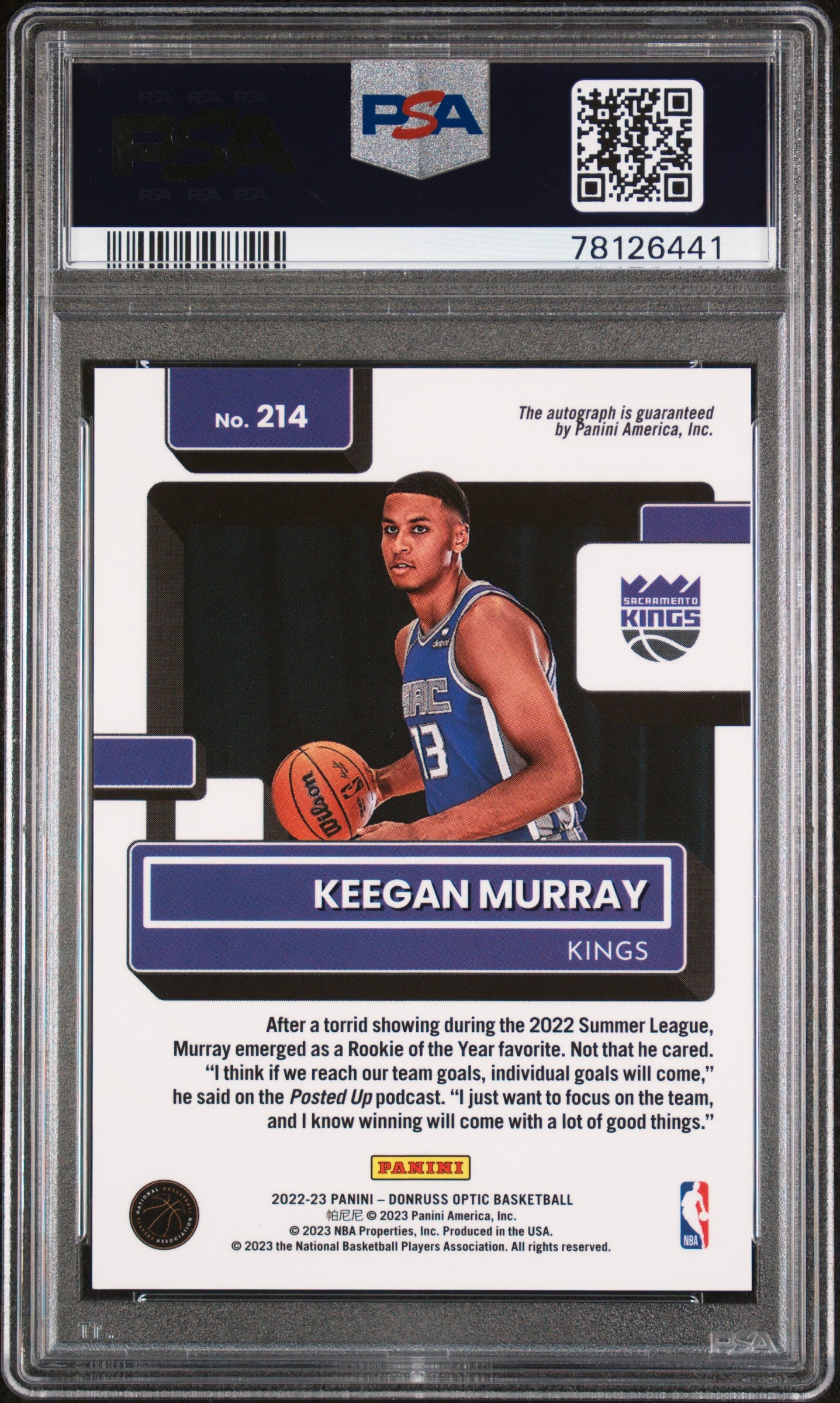 Keegan Murray 2022 Donruss Optic Auto #214 PSA 9 Mint 10 Auto