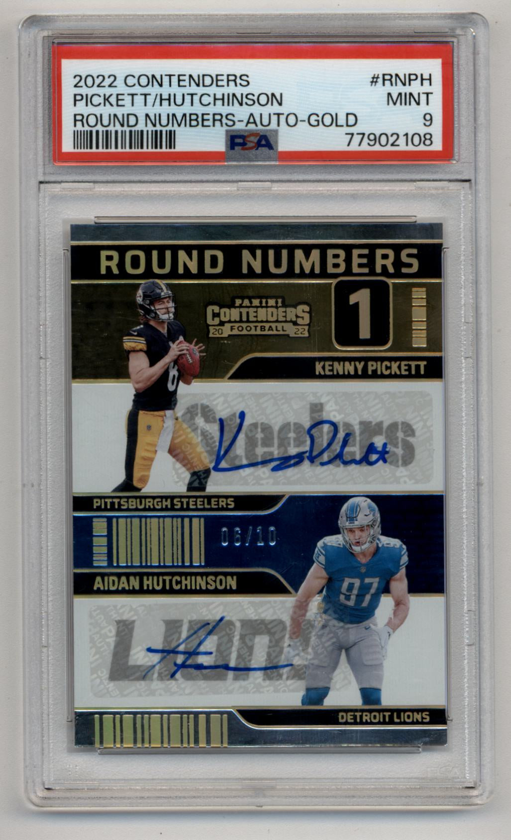 Kenny Pickett Aidan Hutchinson 2022 Contenders Round Numbers Auto Gold 06/10 PSA 9 Mint