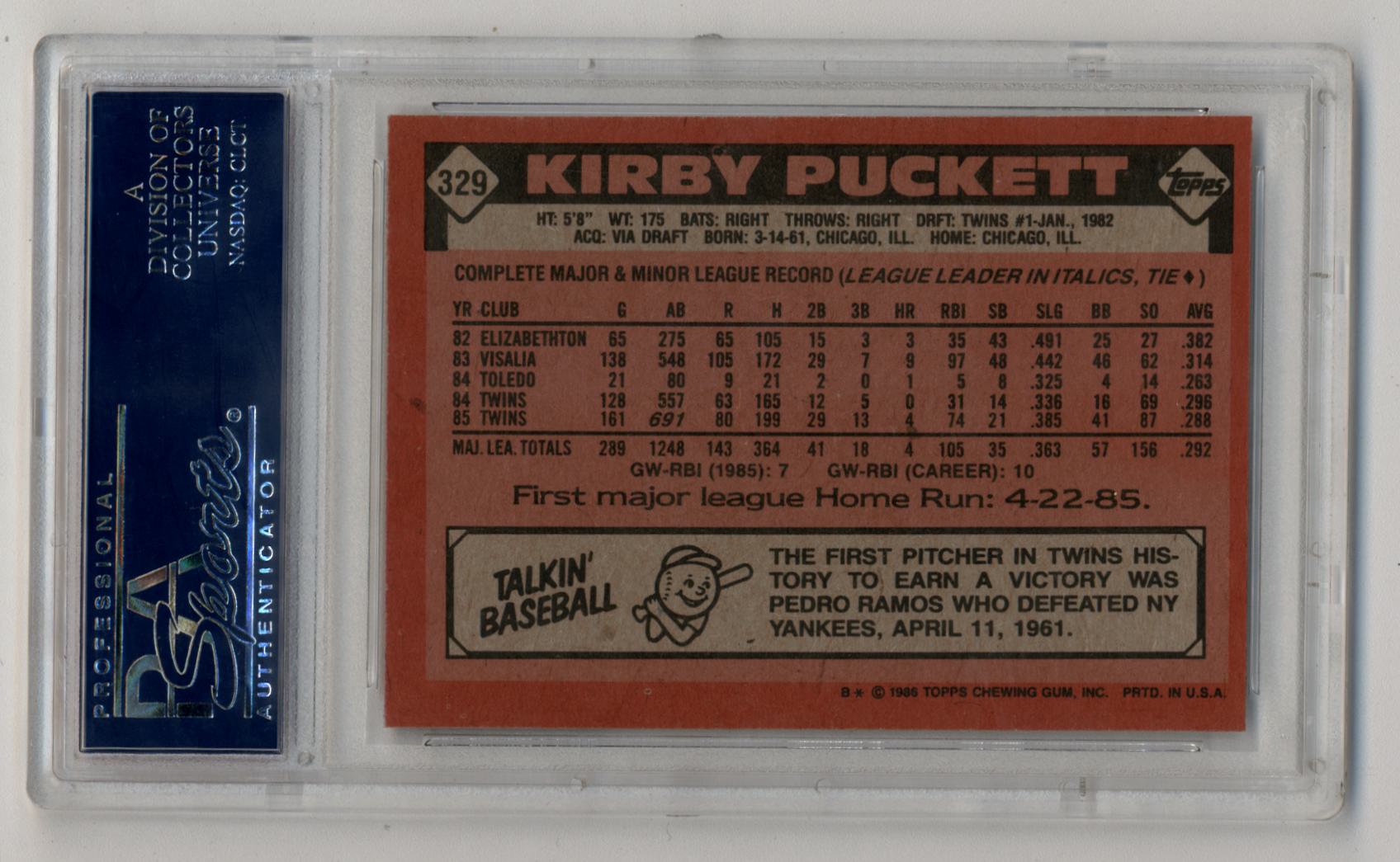 Kirby Puckett 1986 Topps #329 PSA 10 Gem Mint