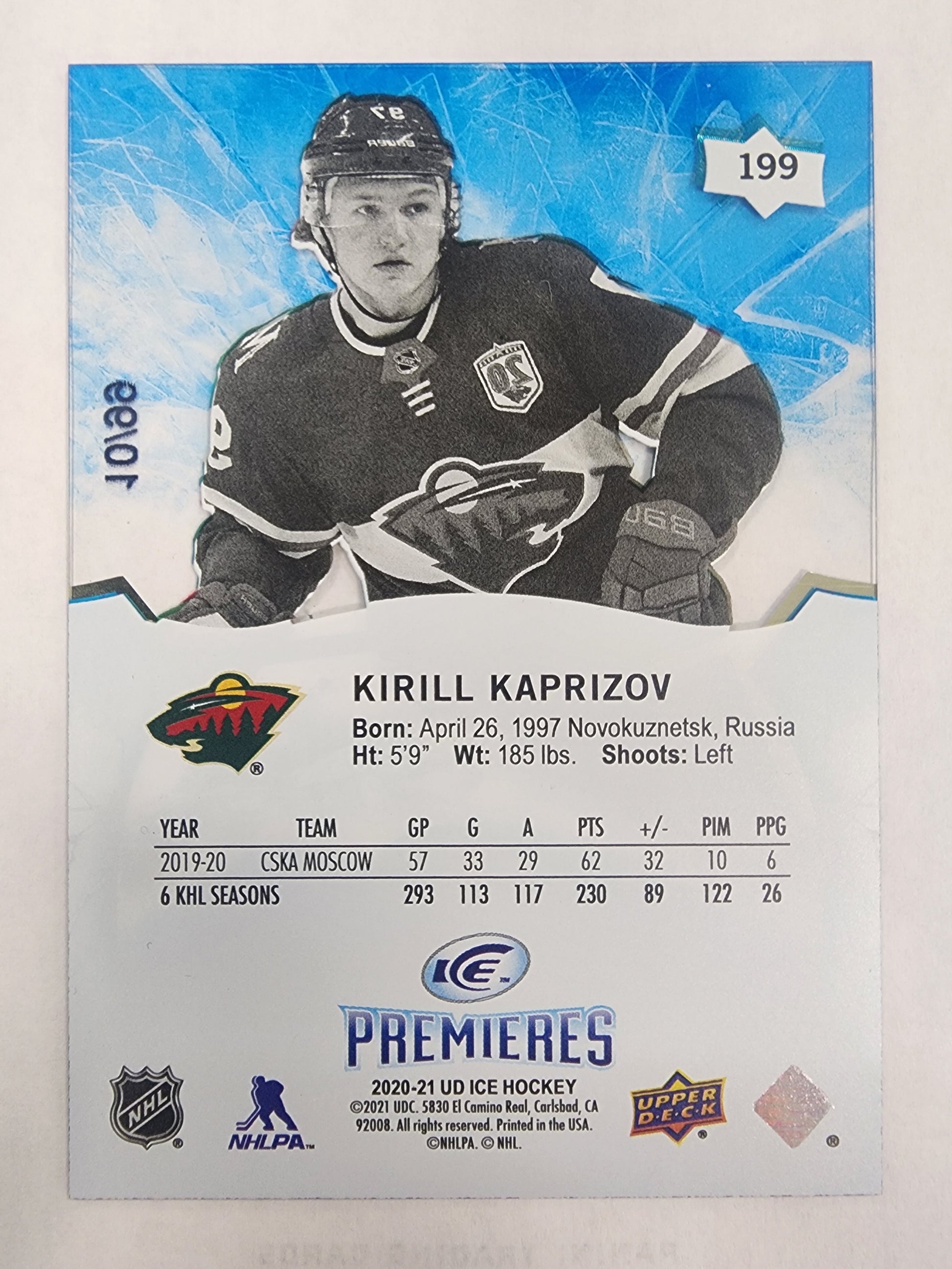 Kirill Kaprizov 2020 Upper Deck Ice Premieres RC #10/99