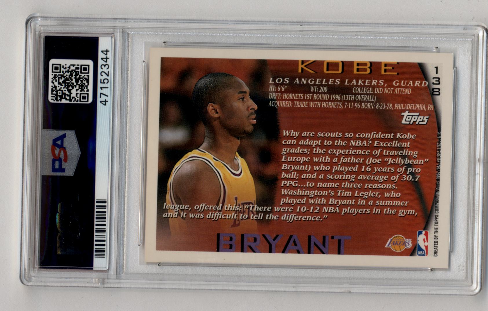 Kobe Bryant 1996-97 Topps Rookie #138 PSA 10 Gem Mint