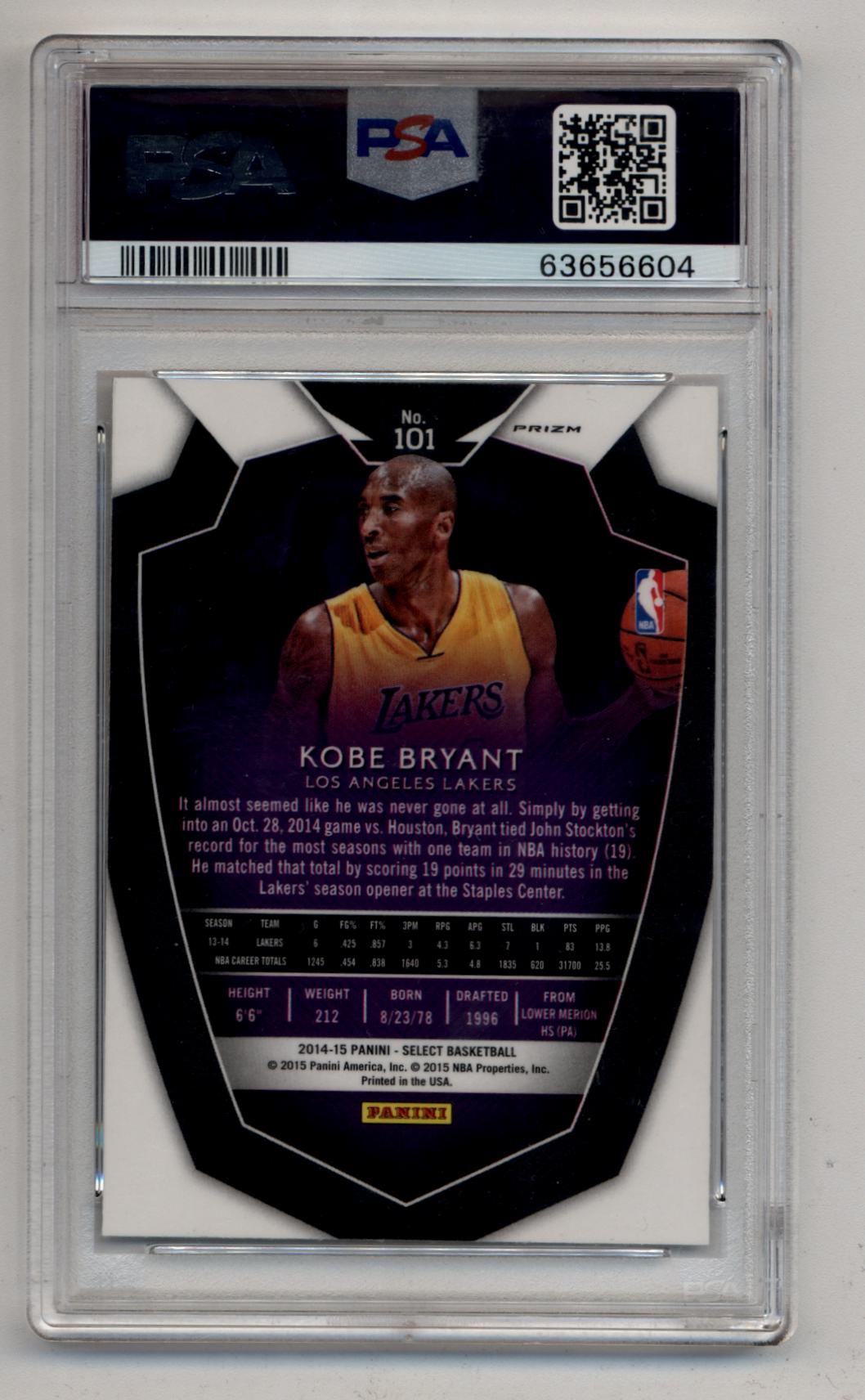 Kobe Bryant 2014-15 Select Silver Prizm #101 PSA 10 Gem Mint 6604