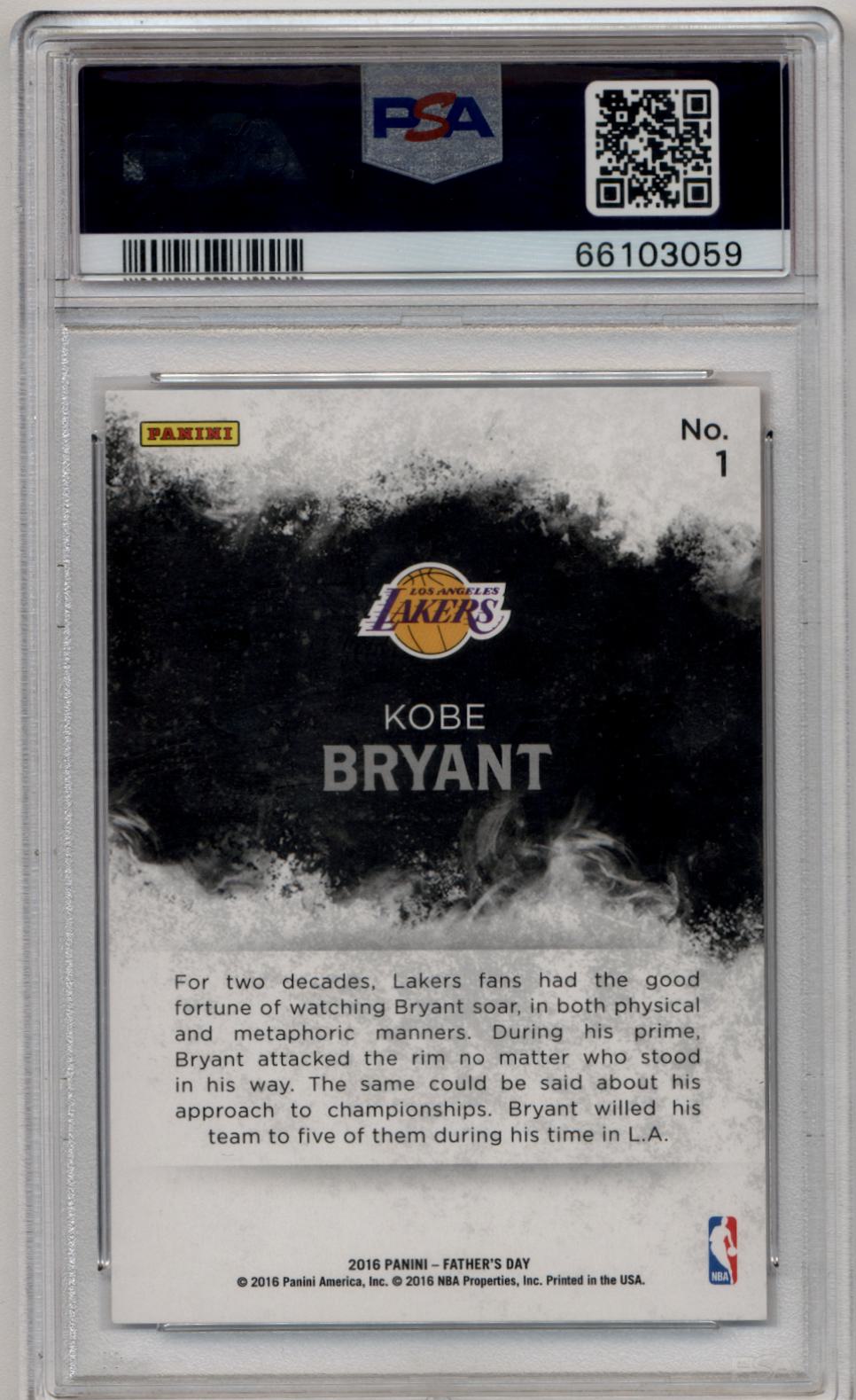Kobe Bryant 2016-17 Father's Day Panini Collection #1 PSA 10 Gem Mint