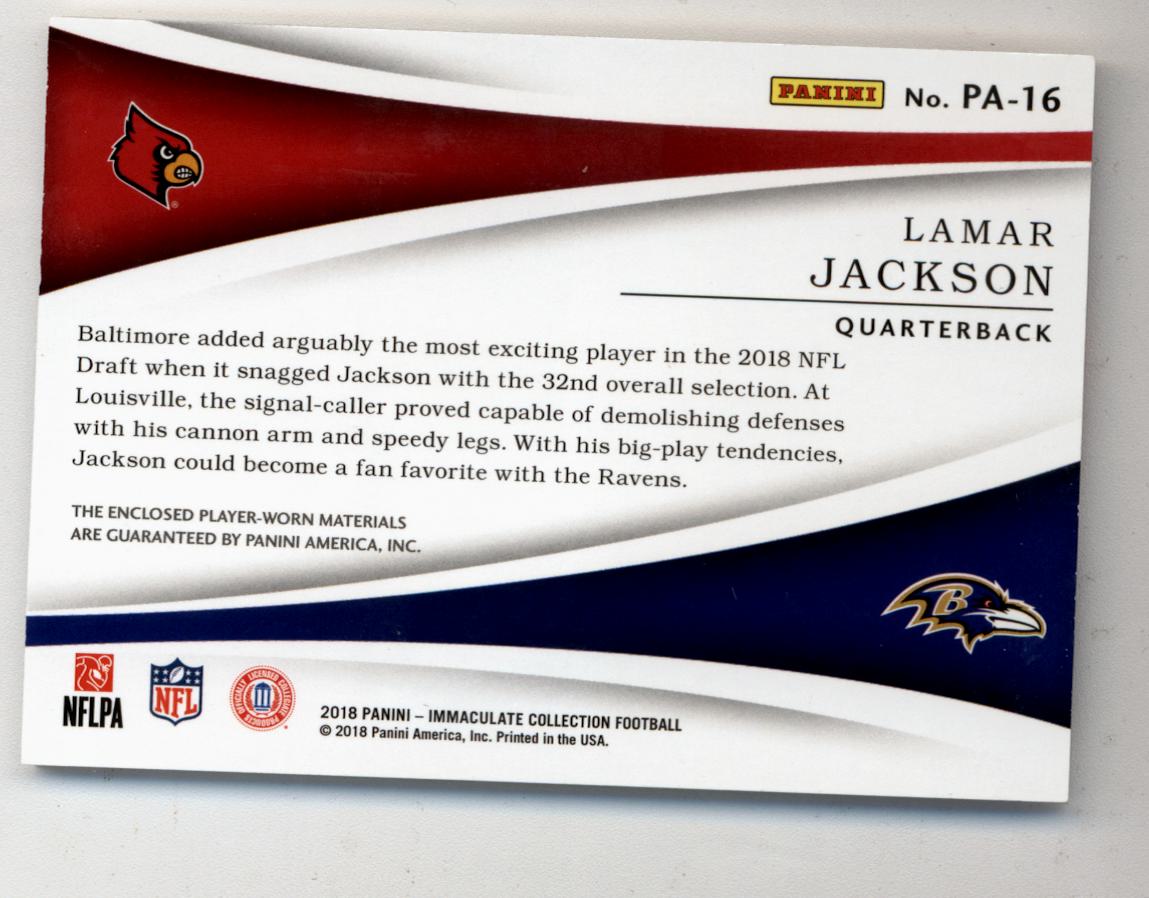 Lamar Jackson 2018 Immaculate Collection Past and Present Relic 3/5