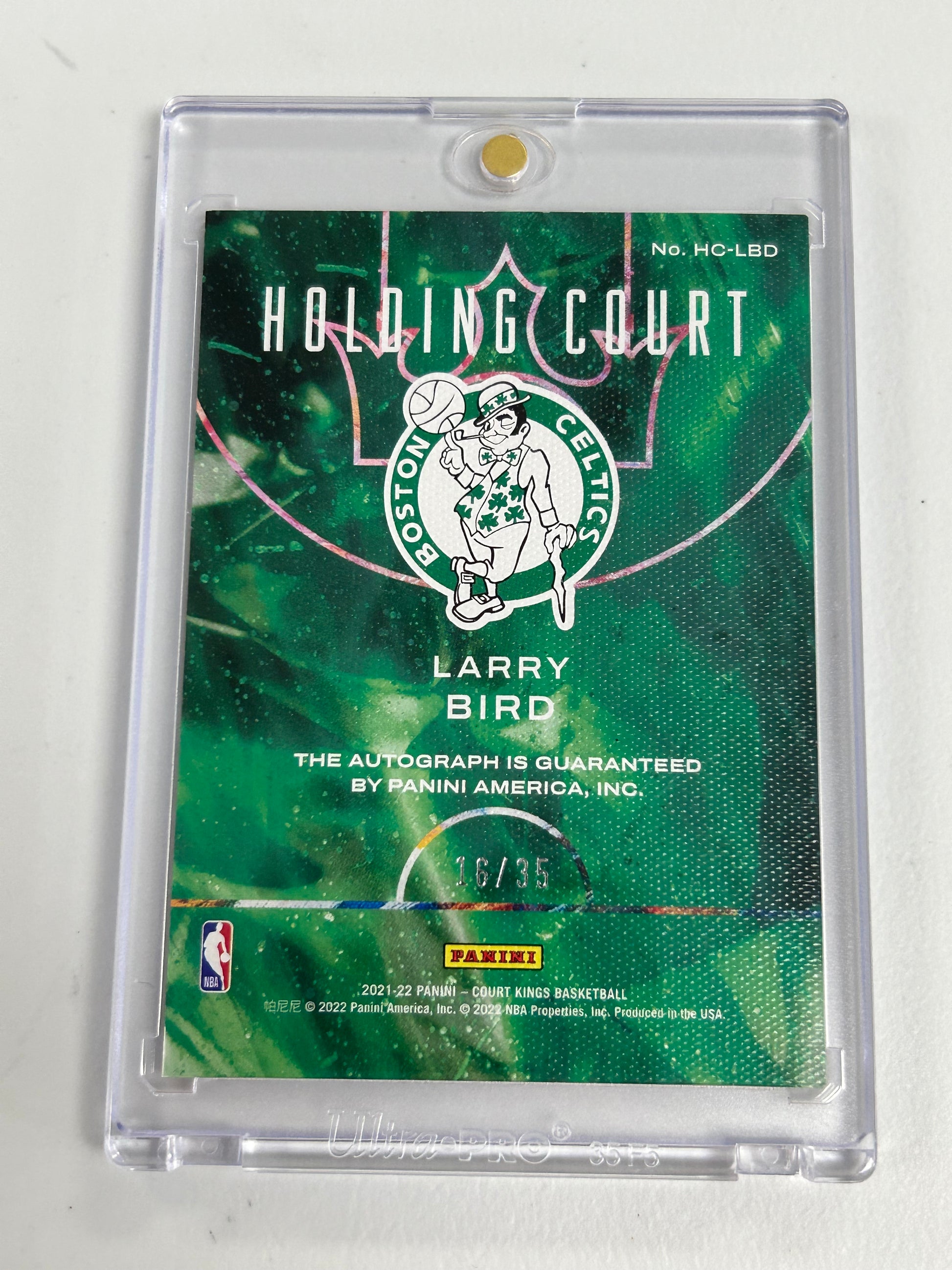 Larry Bird 2021 Panini Court Kings Holding Court Purple Auto #16/35