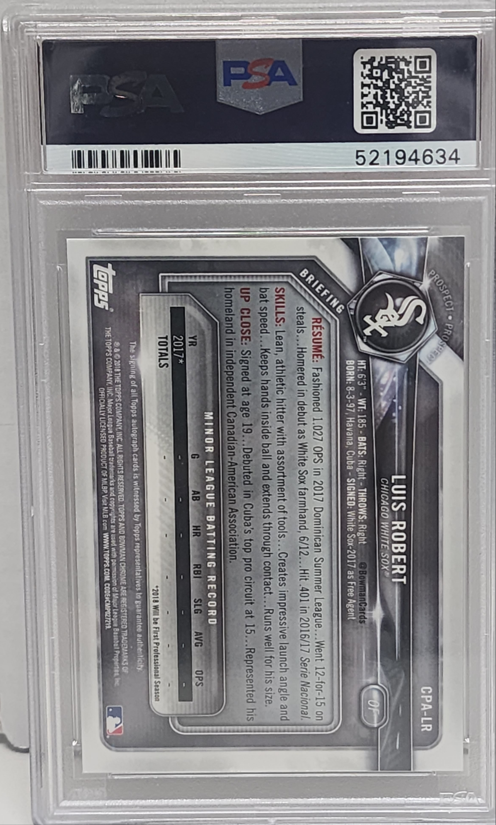 Luis Robert 2018 Bowman Chrome Prospect Auto PSA 10 Gem Mint