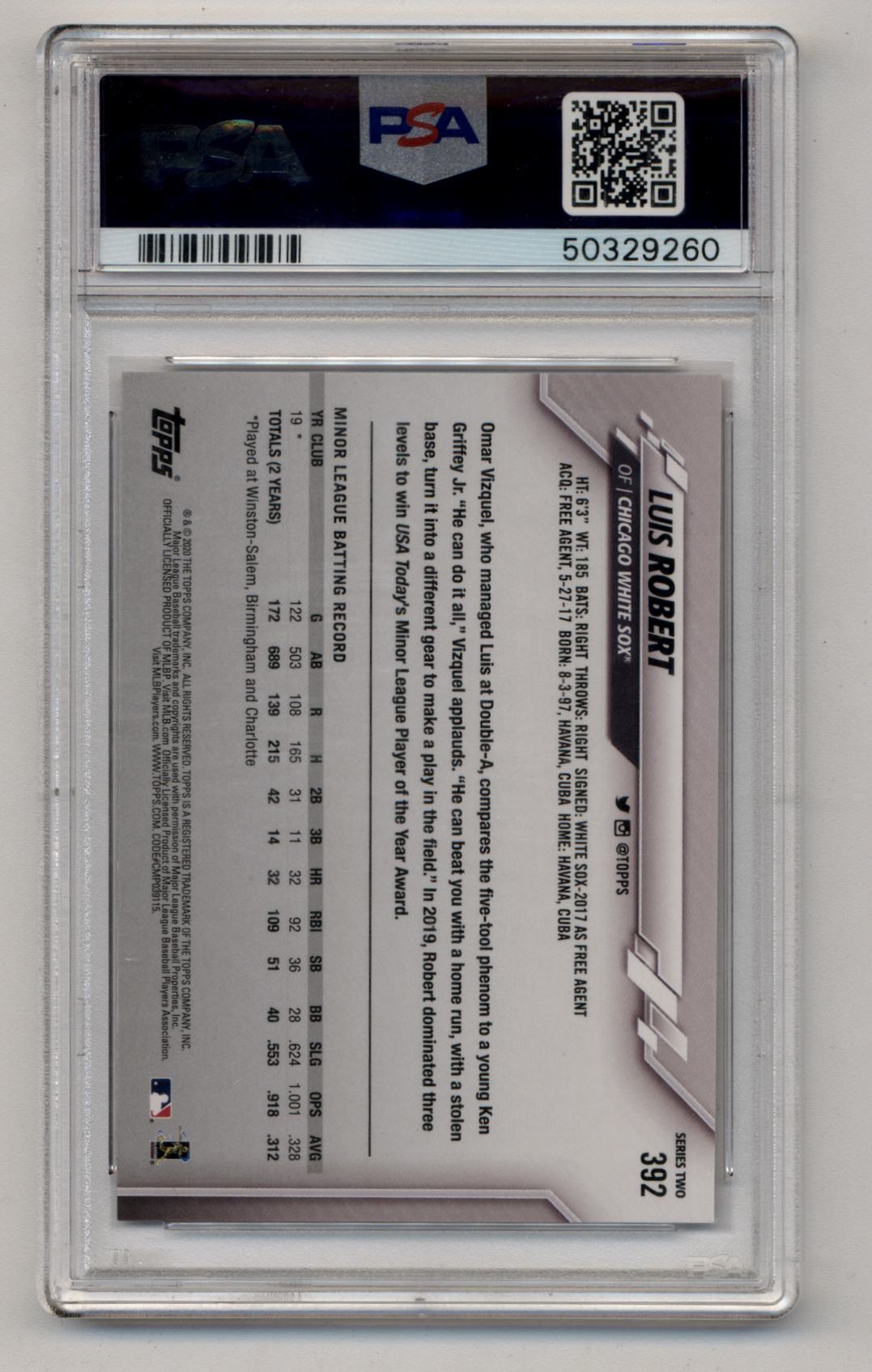 Luis Robert 2020 Topps #392 SP PSA 10 Gem Mint