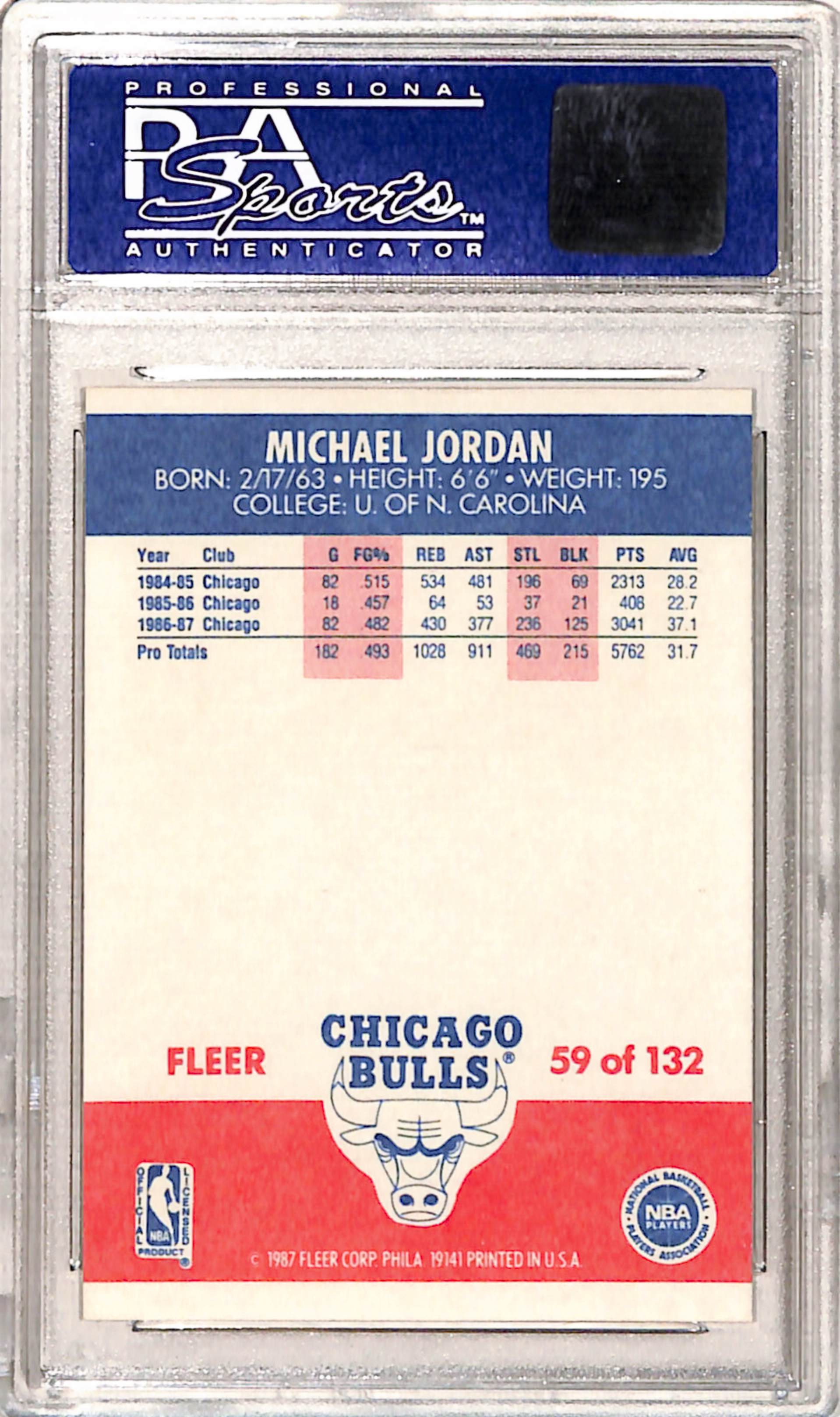 Michael Jordan 1987 Fleer #59 PSA 9 Mint 0764