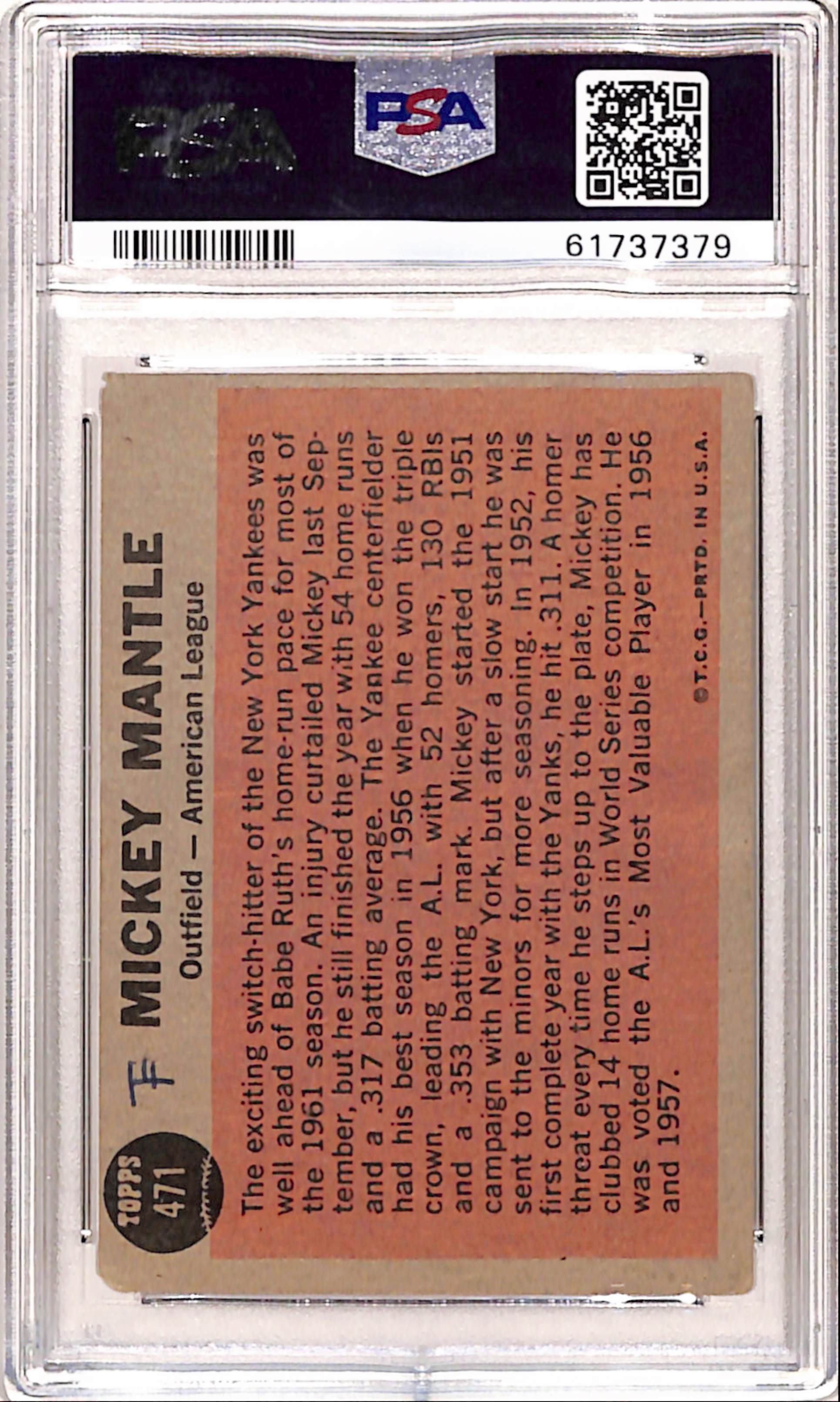 Mickey Mantle 1962 Topps All-Star #471 PSA 2 MK Good