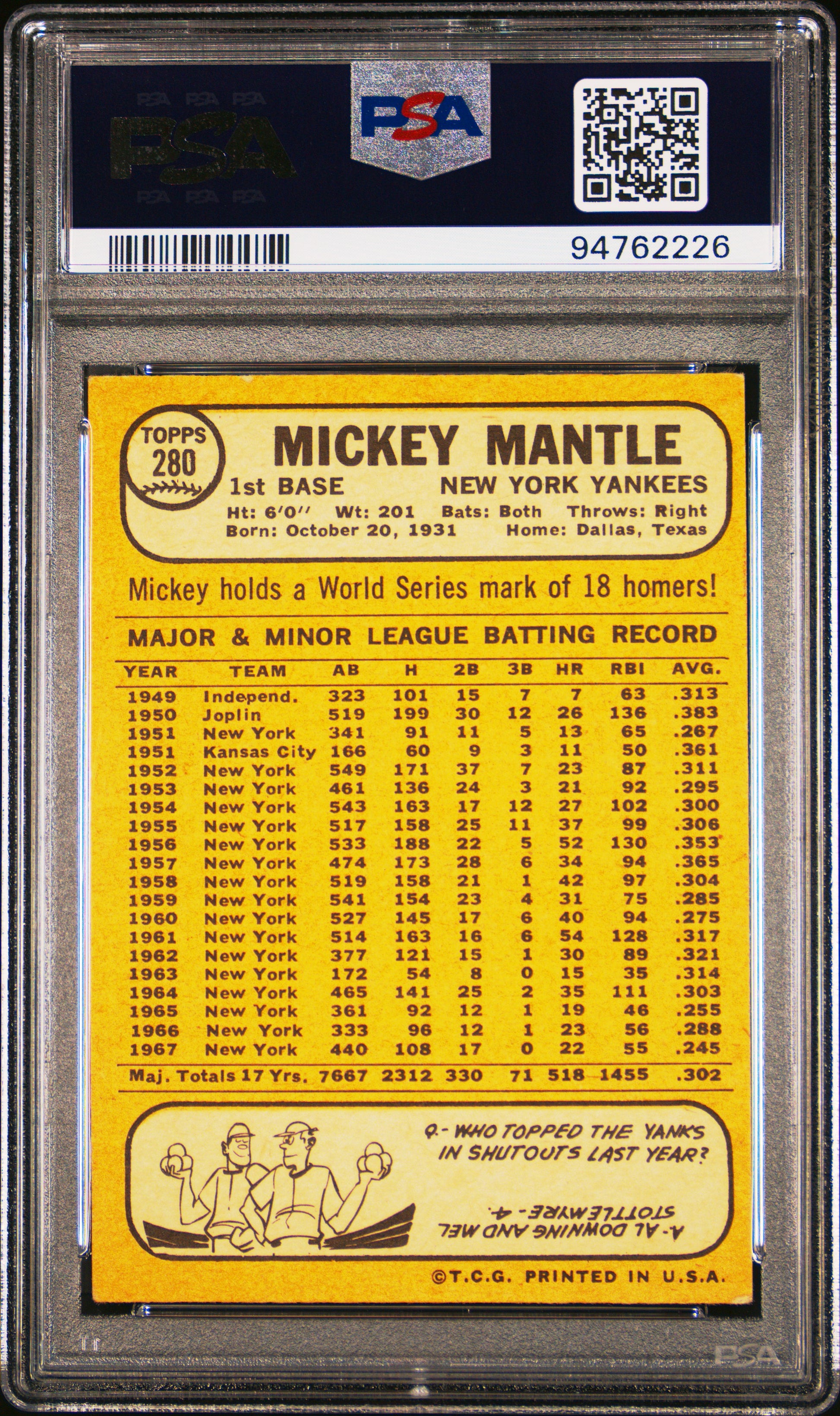 Mickey Mantle 1968 Topps #280 PSA 4 VG-EX 2226