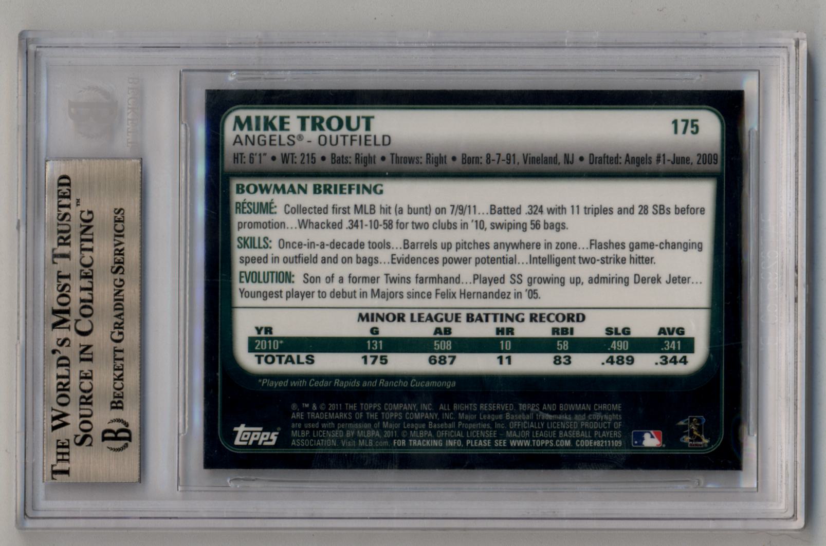 Mike Trout 2011 Bowman Chrome #175 BGS 9.5 Gem Mint 6125