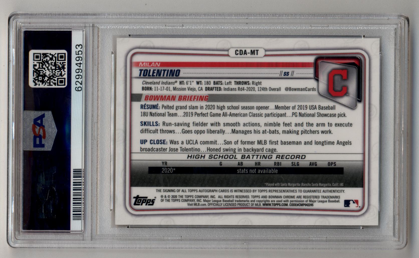 Milan Tolentino 2020 Bowman Chrome Draft Picks Gold Wave Refractor Auto 48/50 PSA 10 Gem Mint