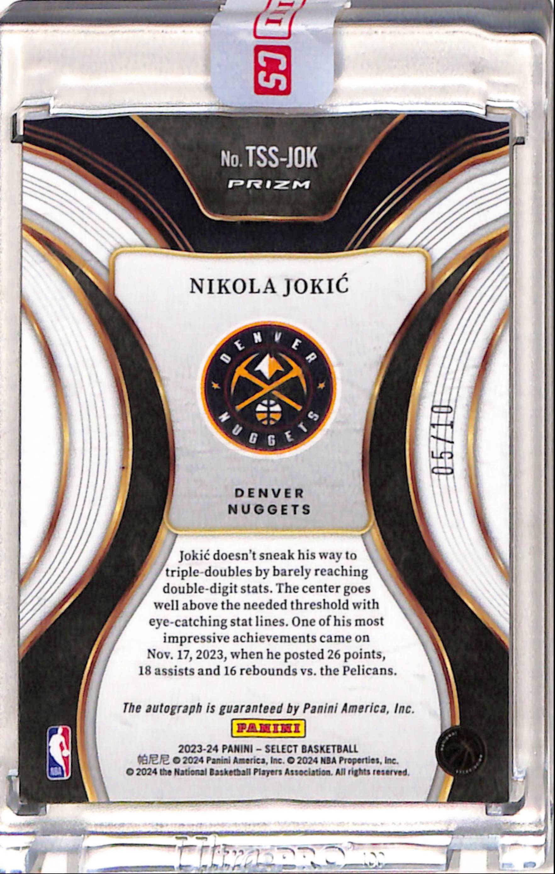 Nikola Jokic 2023 Panini Select Top Shelp Gold Auto #5/10