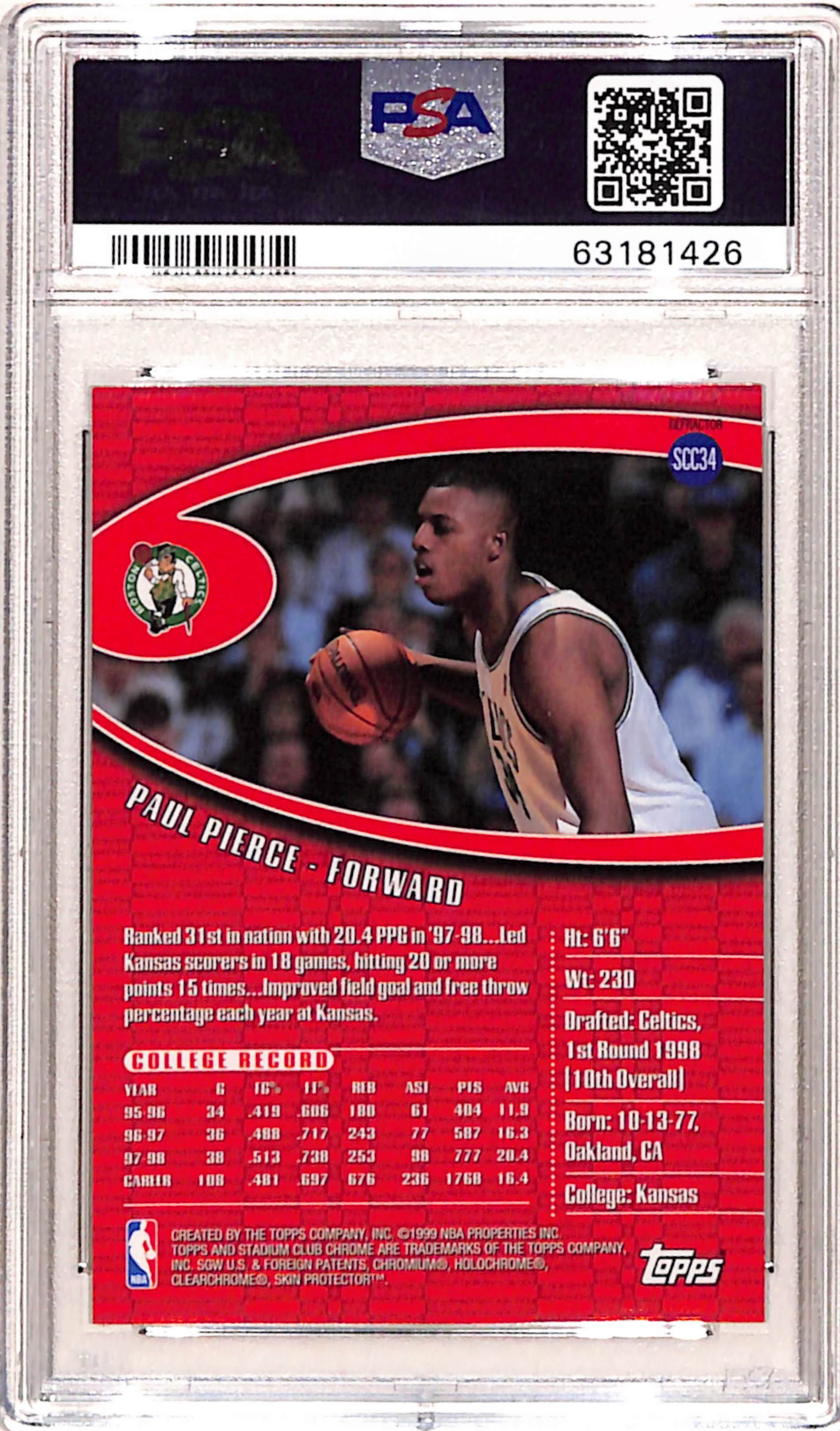 Paul Pierce 1998 Stadium Club Chrome Refractor #34 PSA 10 Gem Mint