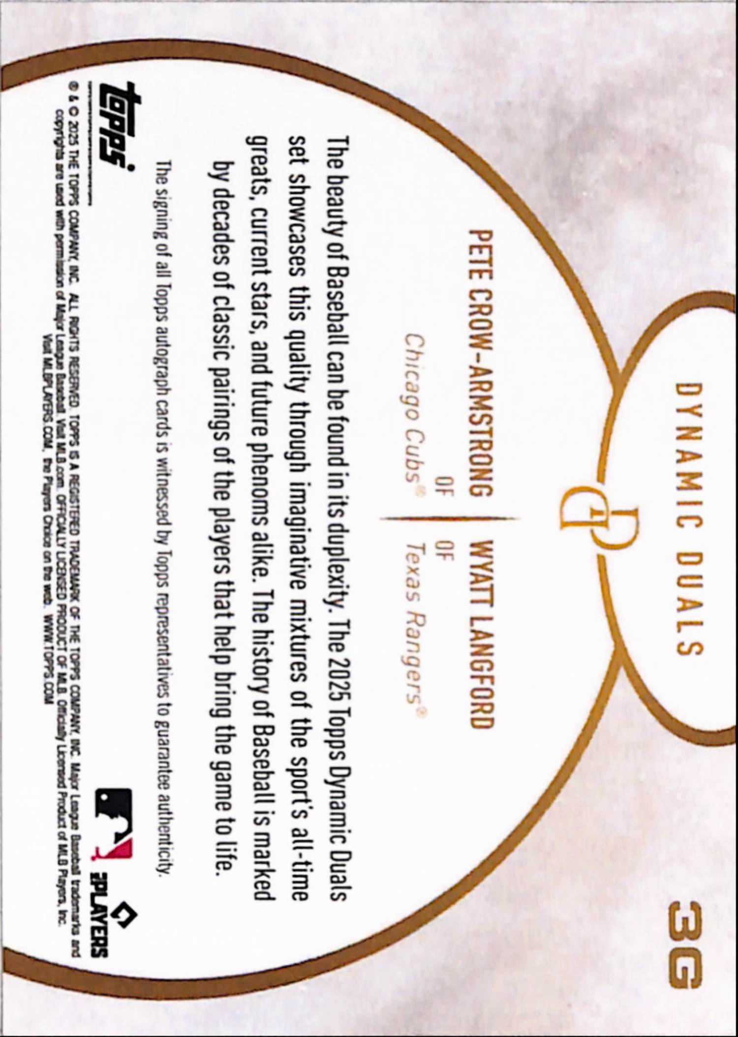 Pete Crow-Armstrong + Wyatt Langford 2025 Topps Dynamic Duals Purple Dual Auto #7/199