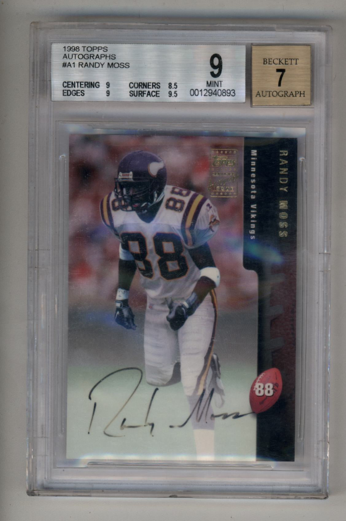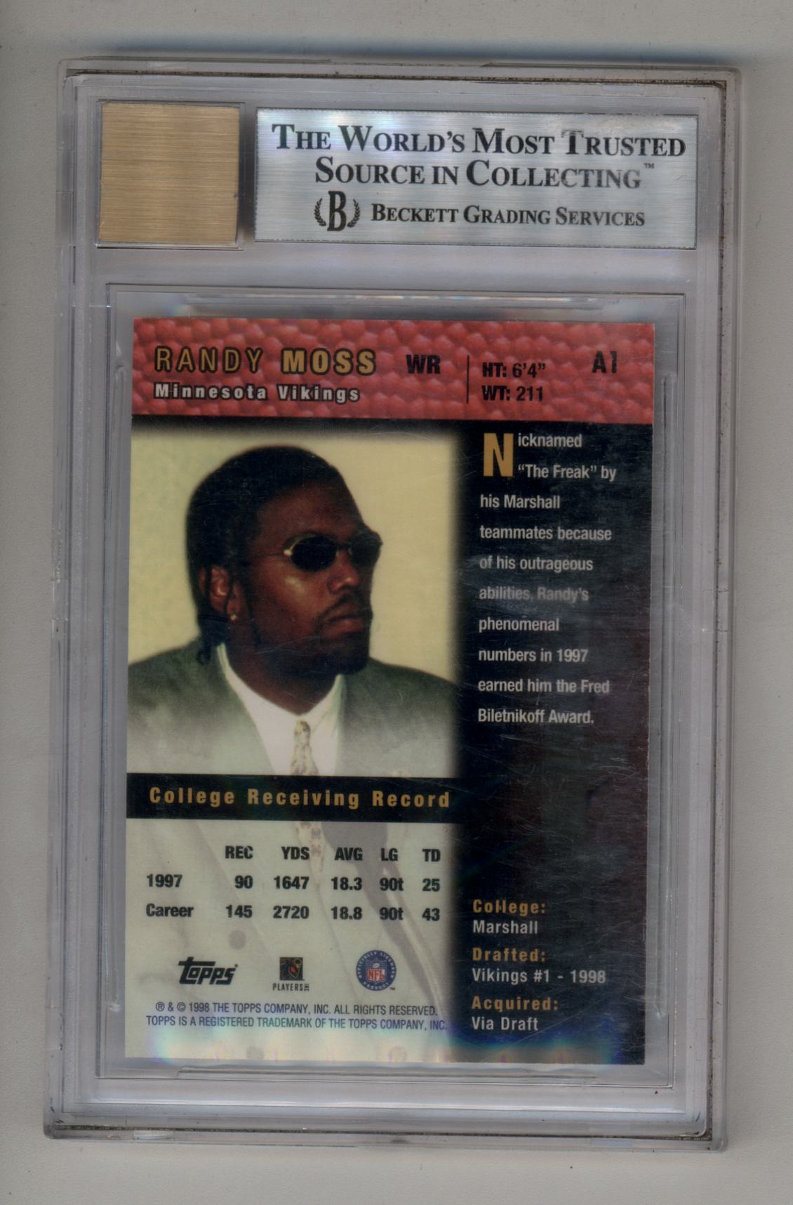 Randy Moss 1998 Topps Auto #A1 BGS 9 Mint Auto 7