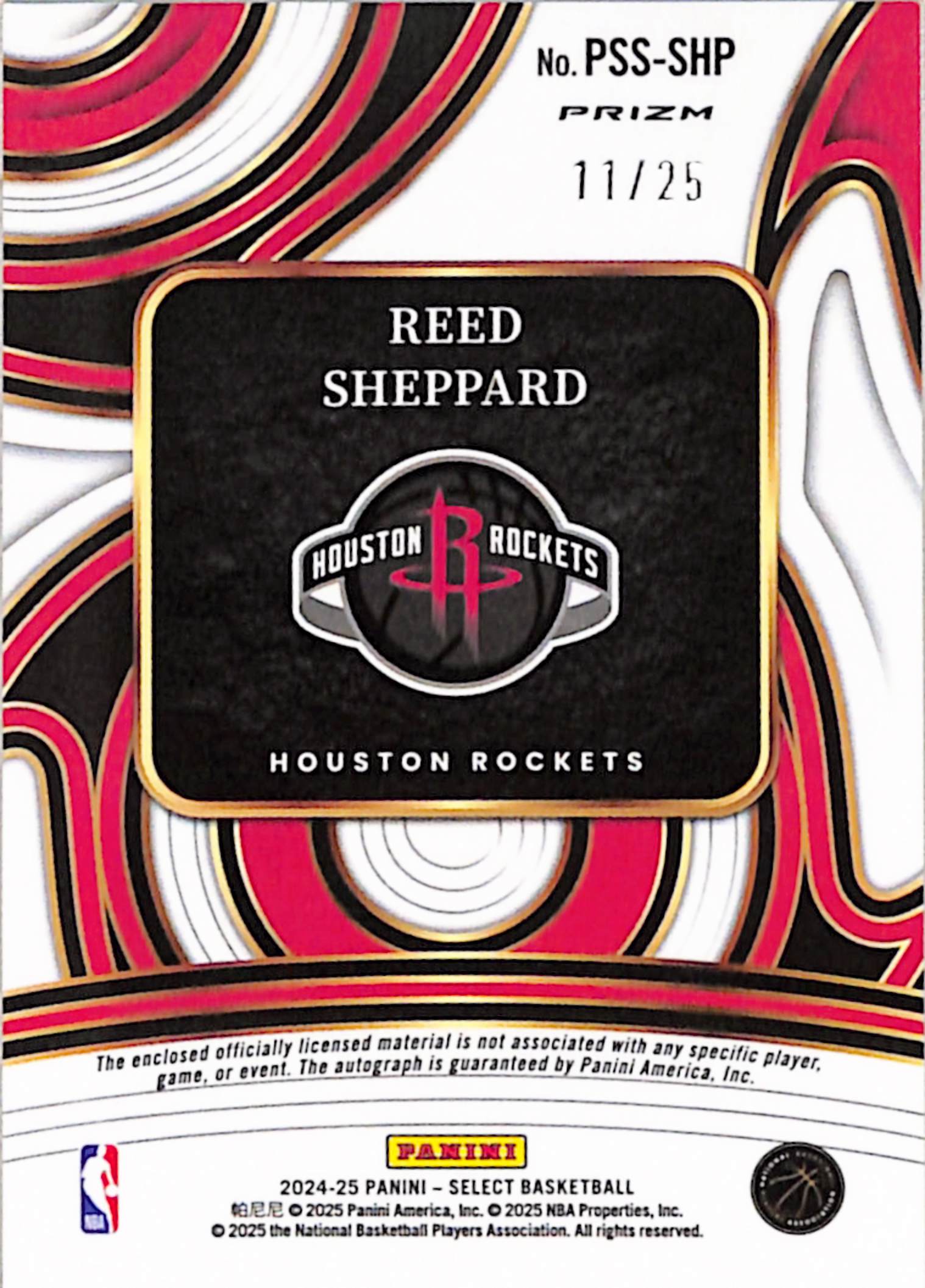 Reed Sheppard 2024 Panini Select Rookie Patch Auto #11/25
