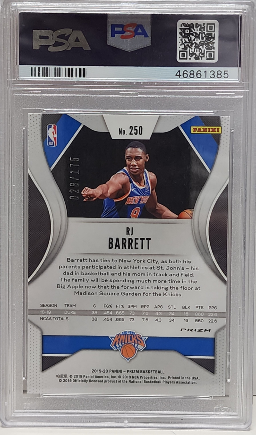 RJ Barrett 2019 Panini Prizm RC Fast Break Prizm Blue #28/175 PSA 10 Gem Mint
