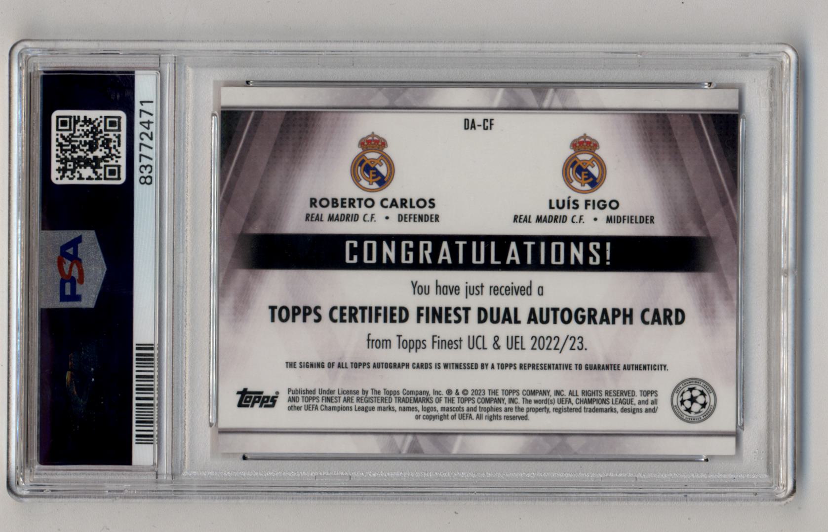 Roberto Carlos Luis Figo 2022-23 Finest UCC Dual Auto Orange Wave13/25 PSA 10