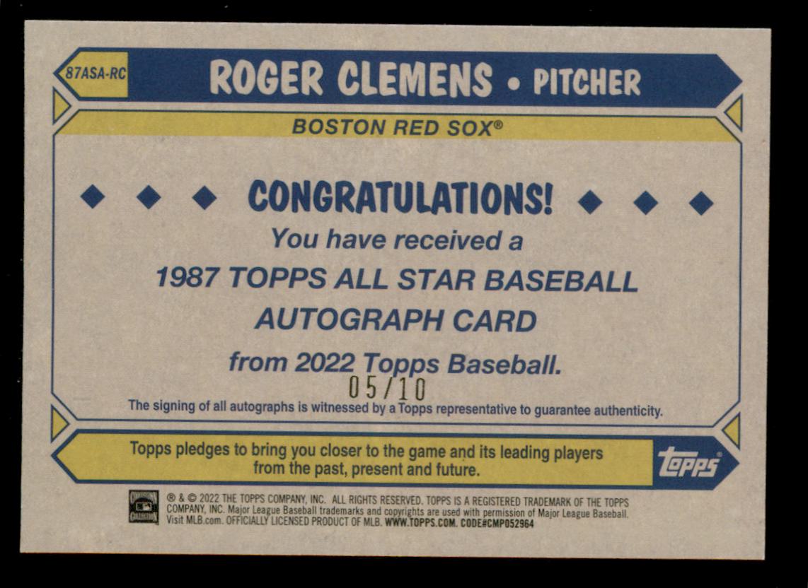 Roger Clemens 2022 Topps '87 Topps All-Star Auto Red 05/10